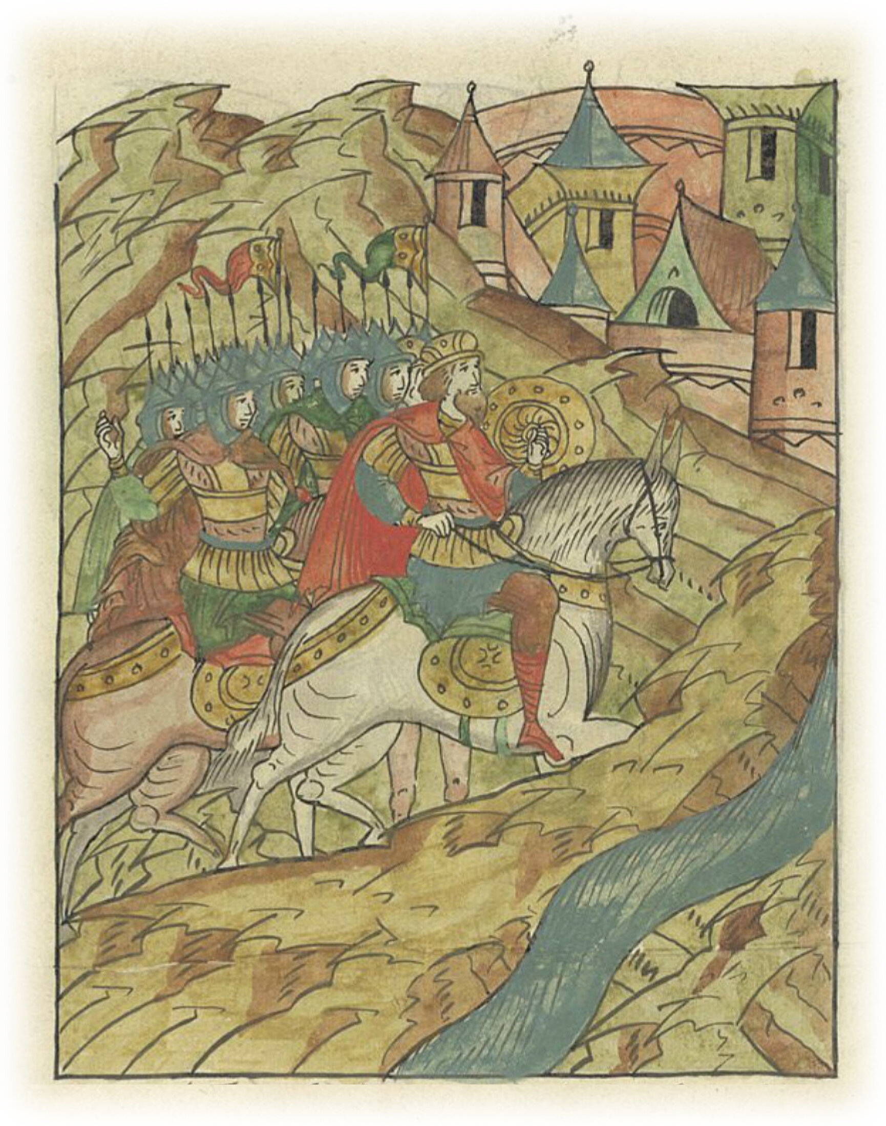 Воеводы царя Ивана Васильевича, разделившись, идут в погоню за царем Емгурчеем.