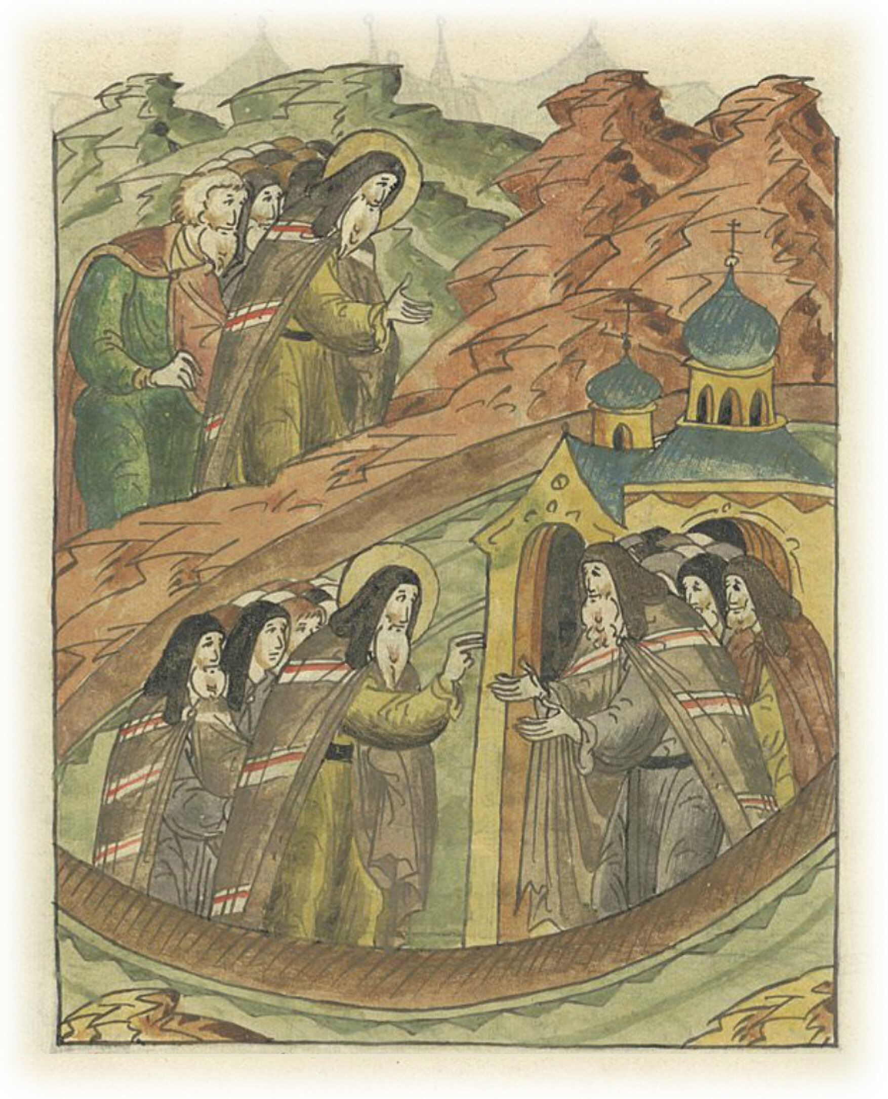 О Савве Сербском. Святой Савва возвращается в Великую Антиохию, где его с почестями принимает патриарх, и поклоняется святым местам. Затем он приходит в монастырь святого Симеона на Дивной горе, кланяется его гробу и жертвует много золота.