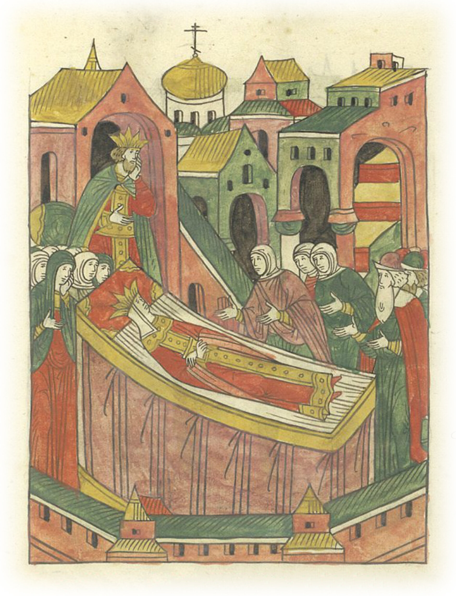 О преставлении великой царицы Анастасии. В том же году в августе в седьмой день в среду, на память святого мученика Диомида, в пятый час дня, скончалась благоверного царя и великого князя Ивана Васильевича всея Руси царица и великая княгиня Анастасия.