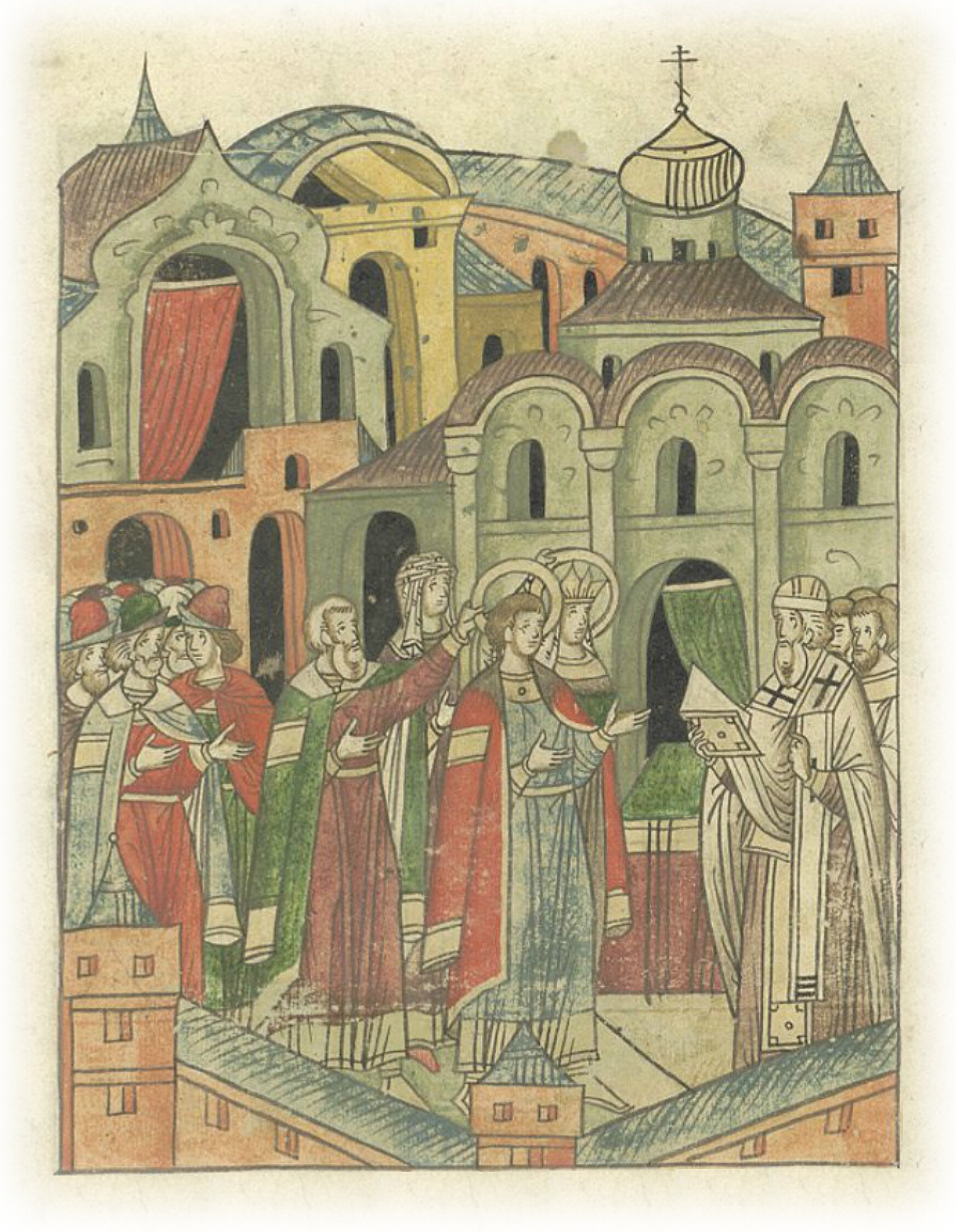 Венчание князя Ивана Михайловича с дочерью Литовского князя Кейстута Марией Тверским владыкой Евфимием в соборной церкви святого Спаса.