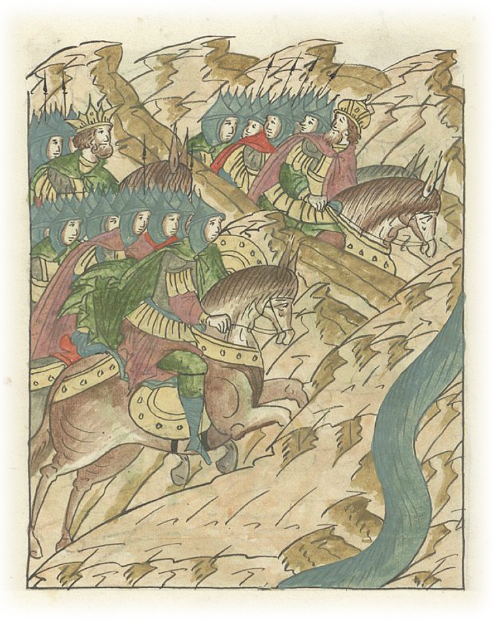 Бегство короля Велая (Белы IV) после поражения в битве с Батыем и погоня за ним татар до реки Дунай.