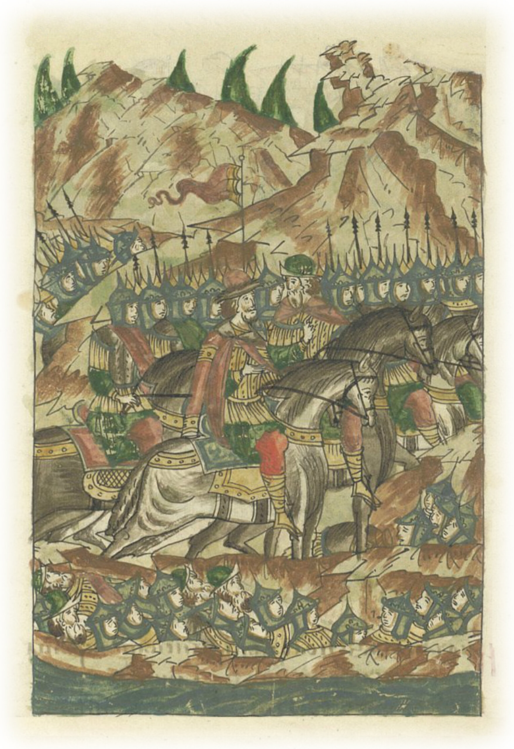 Воеводы царя Ивана Васильевича, разделившись, идут в погоню за царем Емгурчеем.