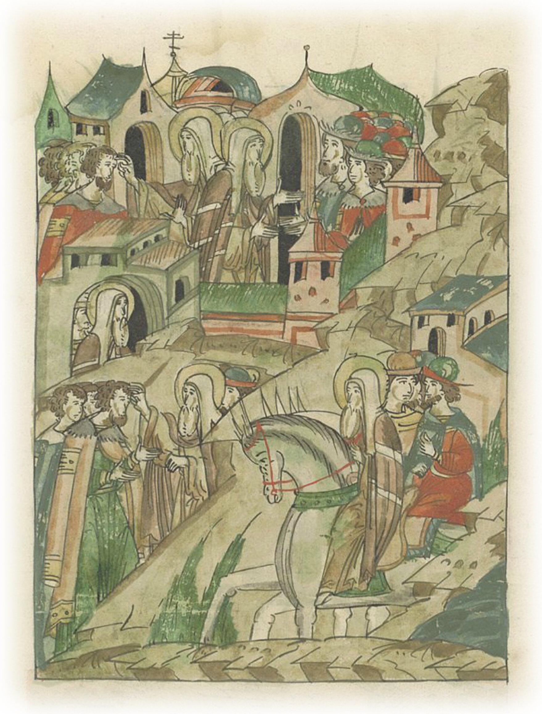 и возвратился, и благословил его самого и город его, и, войдя в город, всех благословил; и с того часа прекратился гнев Божий и перестал великий мор. И поучил митрополит князя о любви и о мире не только с братьями, но и со всеми православными.