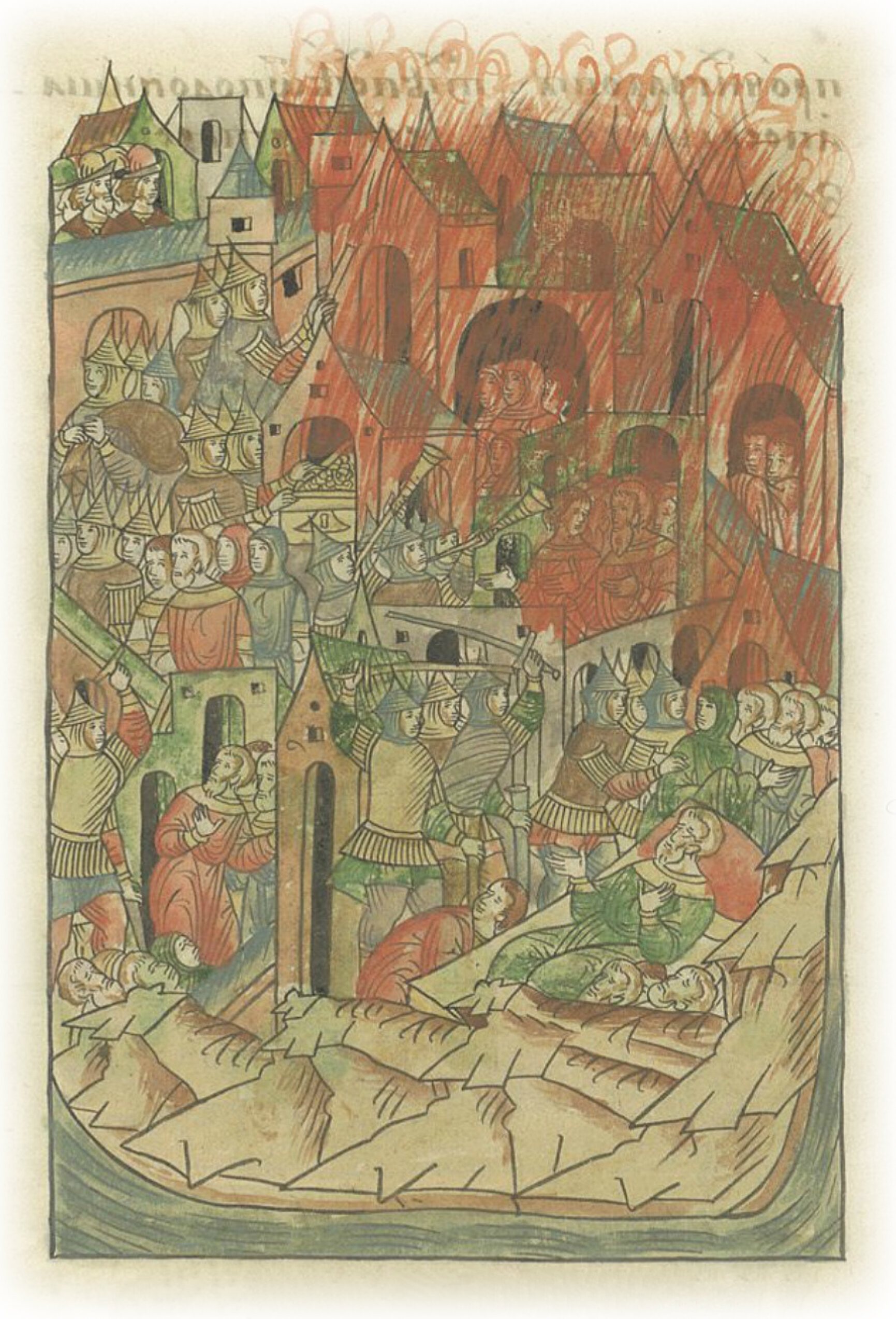 И повелел трубить, а татар начали сечь, грабить и в плен брать; а полон христианский, который был тут на посаде: московский, рязанский, литовский, вятский, устюжский, пермский и иных прочих городов, тот весь отполонили; а посады их все со всех сторон зажгли.