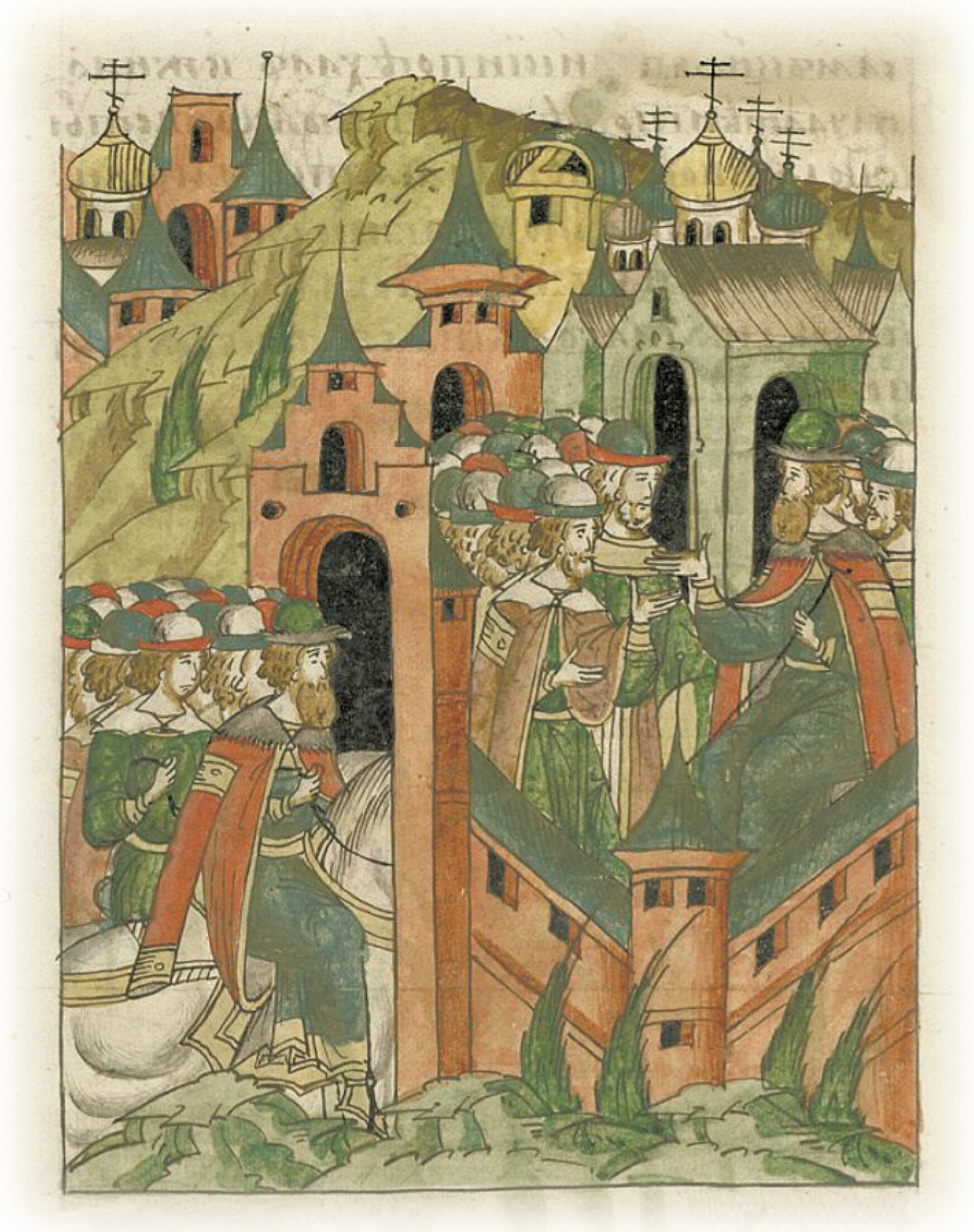 И на Москву приехал (месяца) ноября в 19 день, в воскресенье. И посоветовался великий князь с боярами о том, следует ли ему отпустить Шигалея царя и послов в Нижний Новгород.
