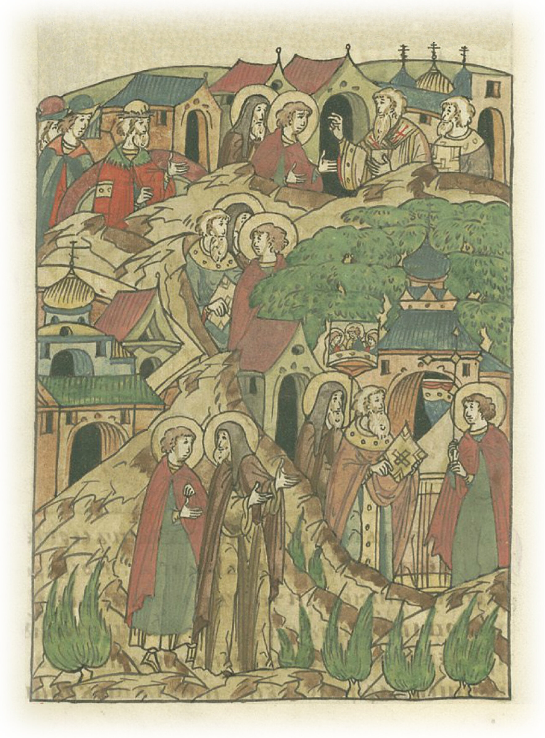 Повесть о преподобном Сергии Радонежском. Инок Стефан, старший брат Варфаломея, находит с ним уединенное место в лесу, чтобы жить там. Братья берут благословение у митрополита Киевского и всея Руси Феогноста на постройку церкви. Также они освящают церковь