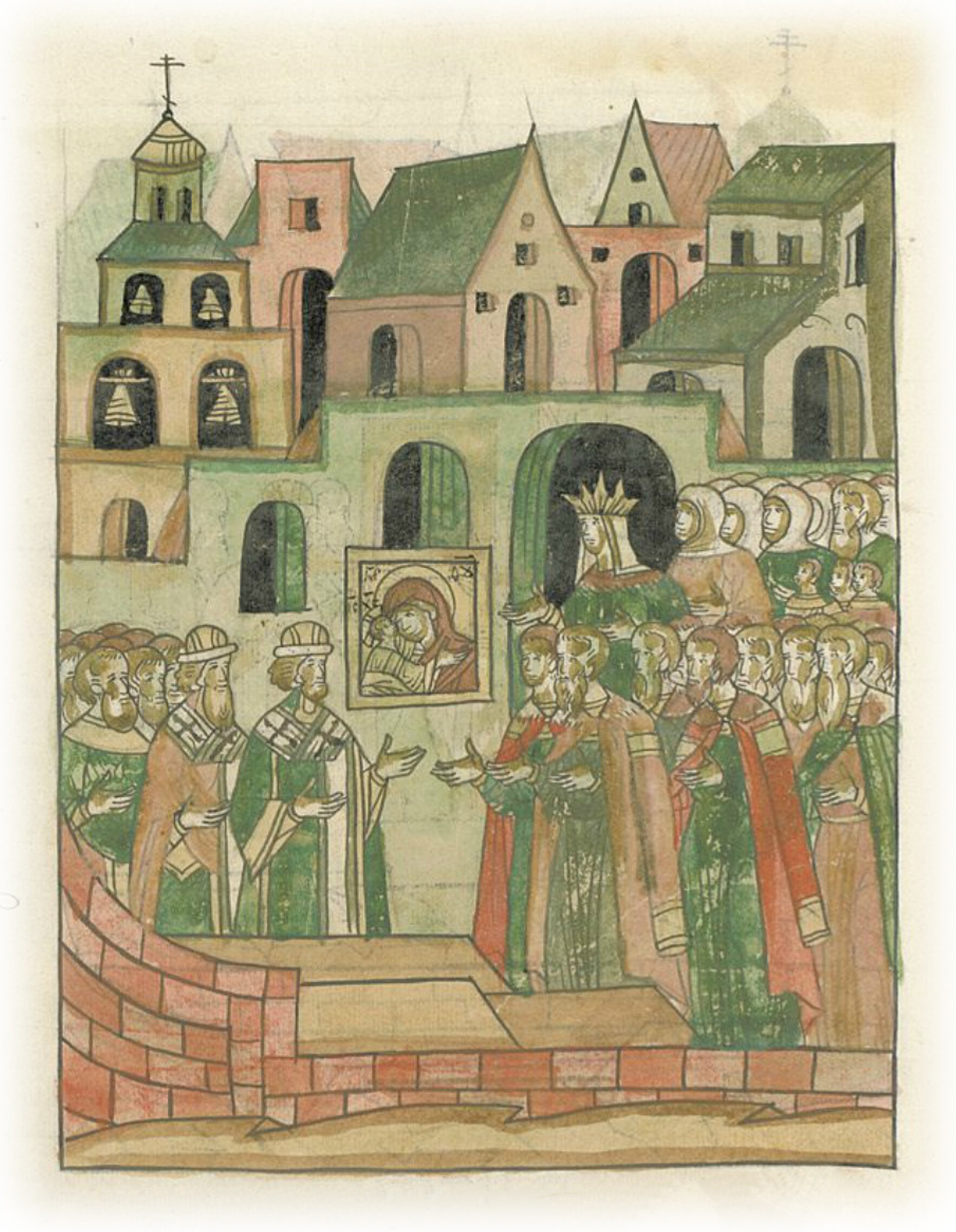 И тогда пришел благоверный и великий князь Иван с сыном великим князем Иваном, и мать его, и братья его Юрий и Андрей, и Борис, и Андрей, и князья их, и бояре, и всё православное христианство славного города Москвы, мужи и жены, малые и великие. И отпели, как подобает, о скончавшихся,