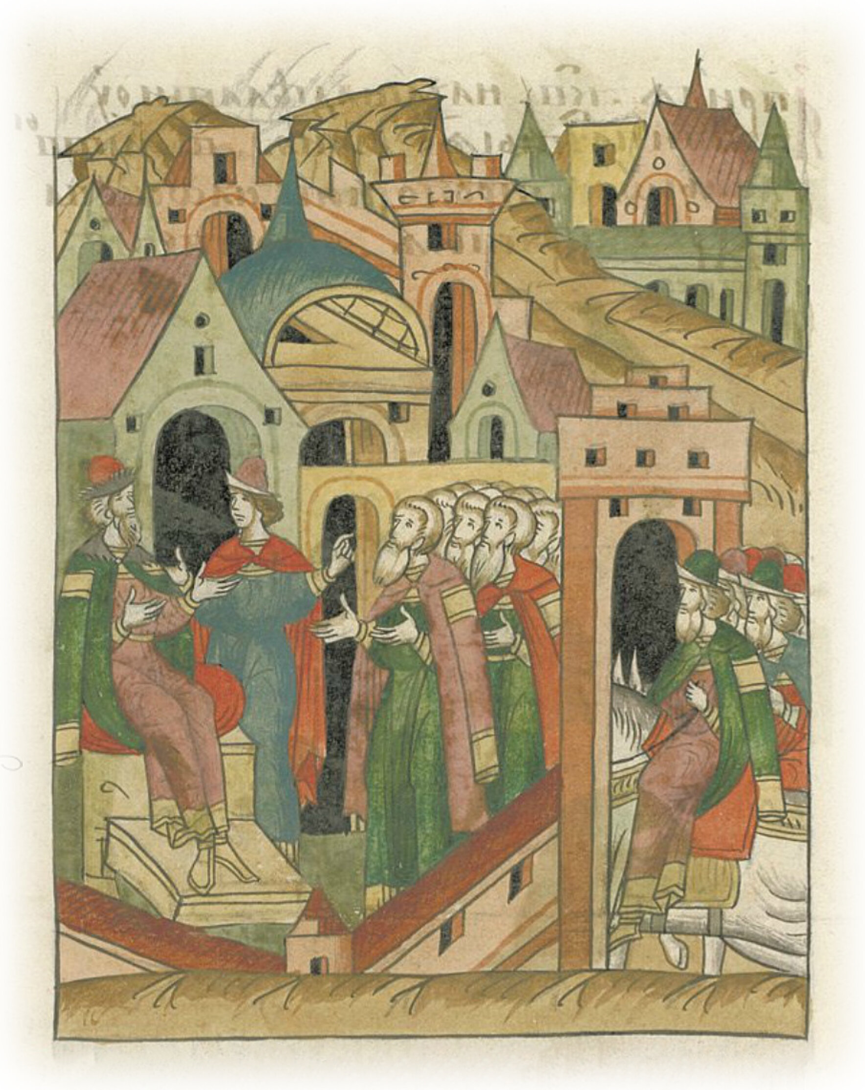 Бояре и боярские дети из Твери приезжают на службу к великому князю Ивану Васильевичу.