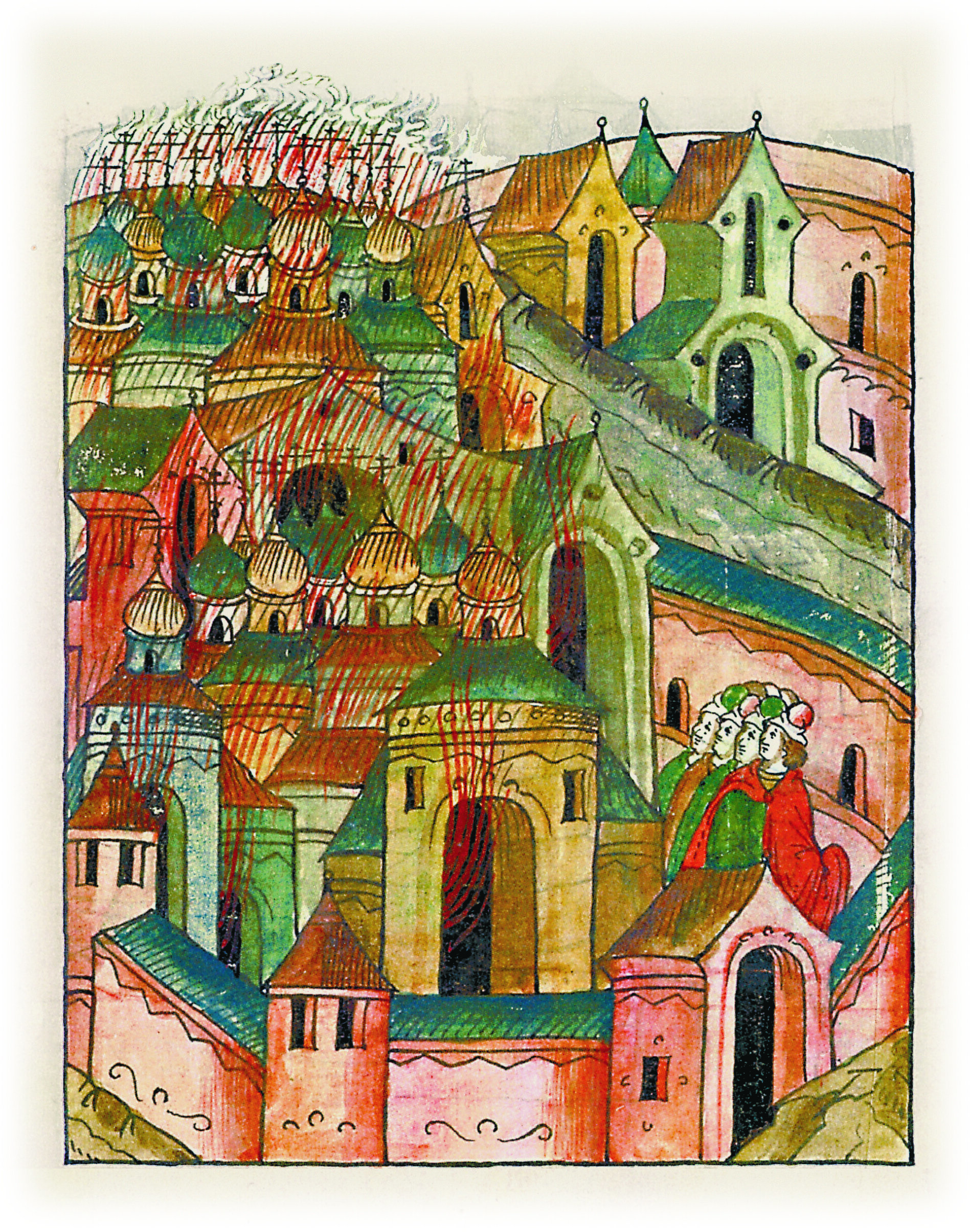 В 6632 (1124) году. Был пожар великий в Киеве, такой, что погорел чуть ли не весь за два дня; и по Подолию погорело, так что церквей одних сгорело почти семьсот; случилось это месяца июня в 23 день и в 24 день, на Рождество Иоанна Предтечи.