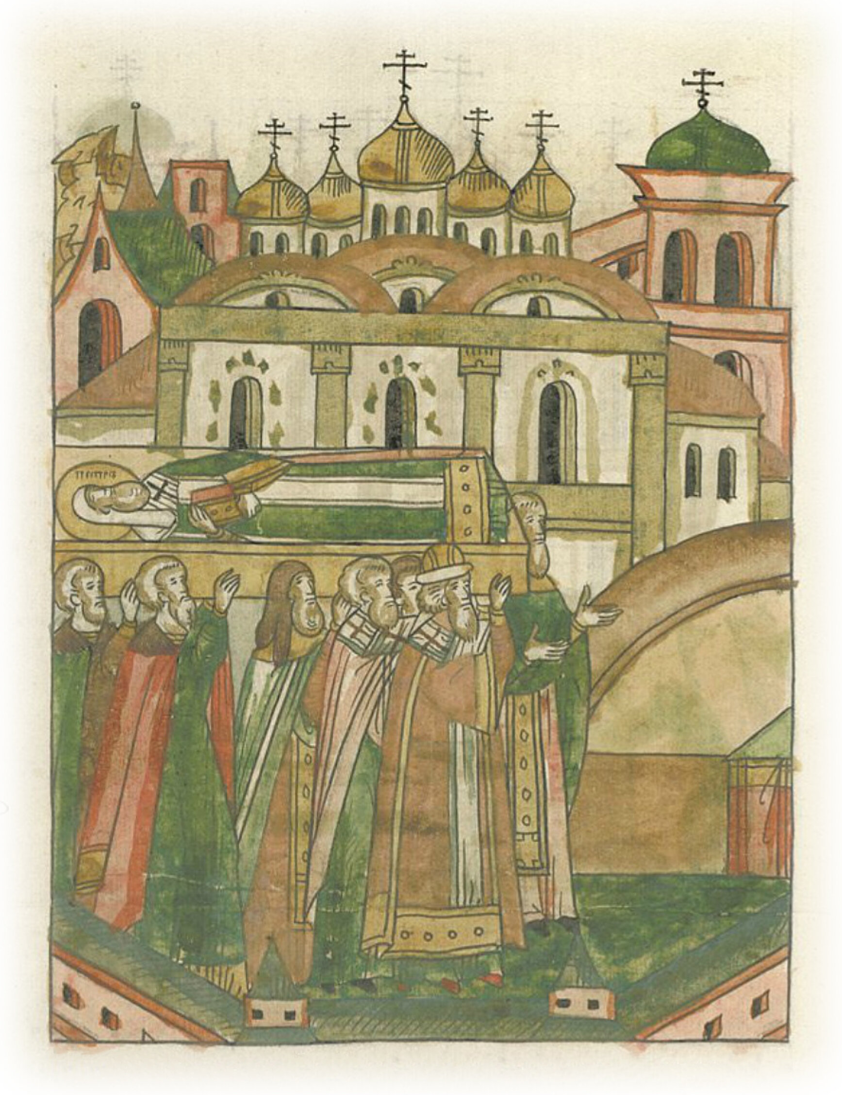 Перенесение мощей Петра митрополита и прочих святителей в новую церковь.