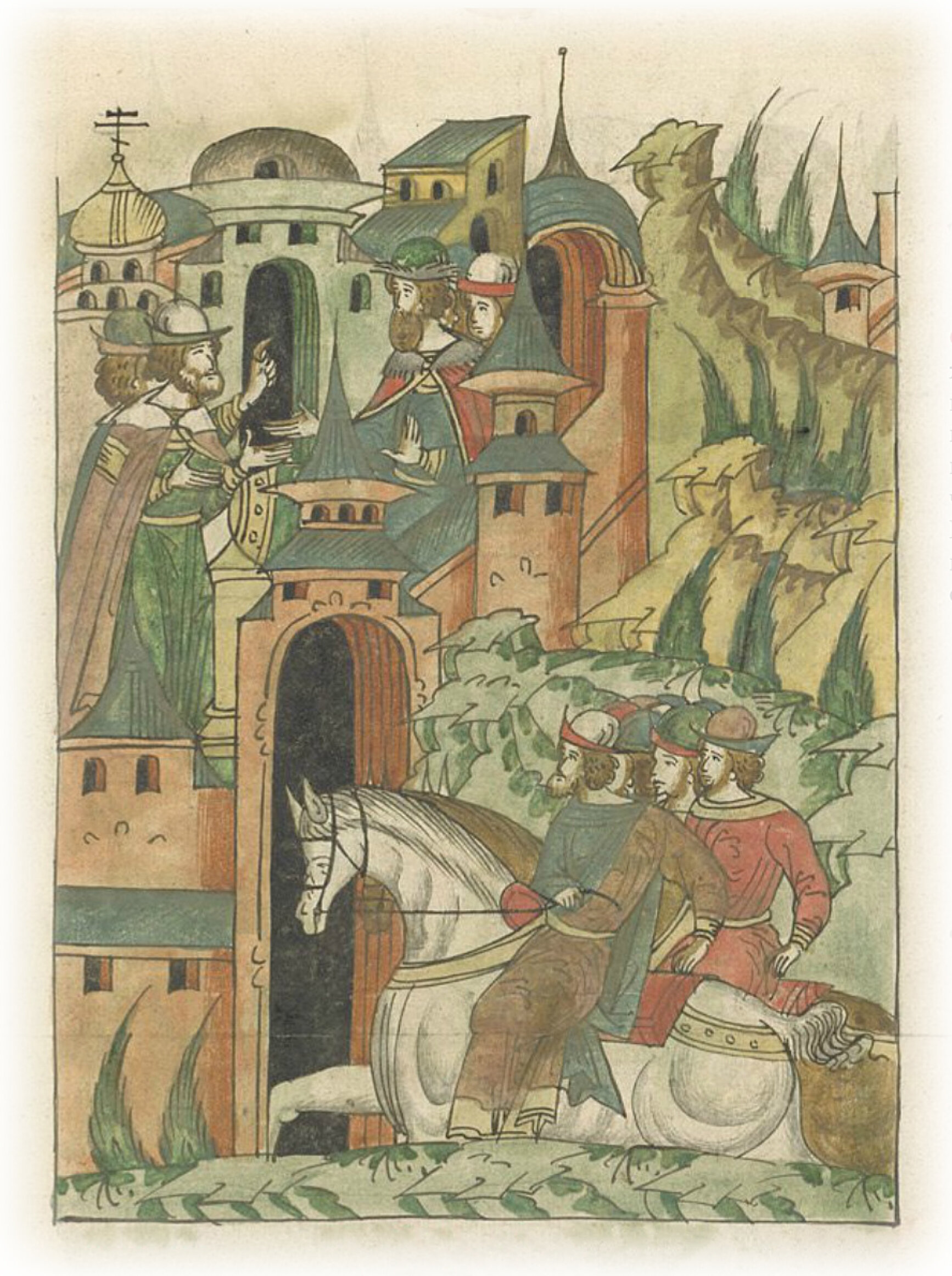 Ругодивские посадники Яким и Захар приезжают в Москву. Воеводы царя Ивана Васильевича Алексей Адашев и Иван Михайлов сообщают им, что государь пожалует их, если сдадут его воеводам помимо Ругодива Вышгород.