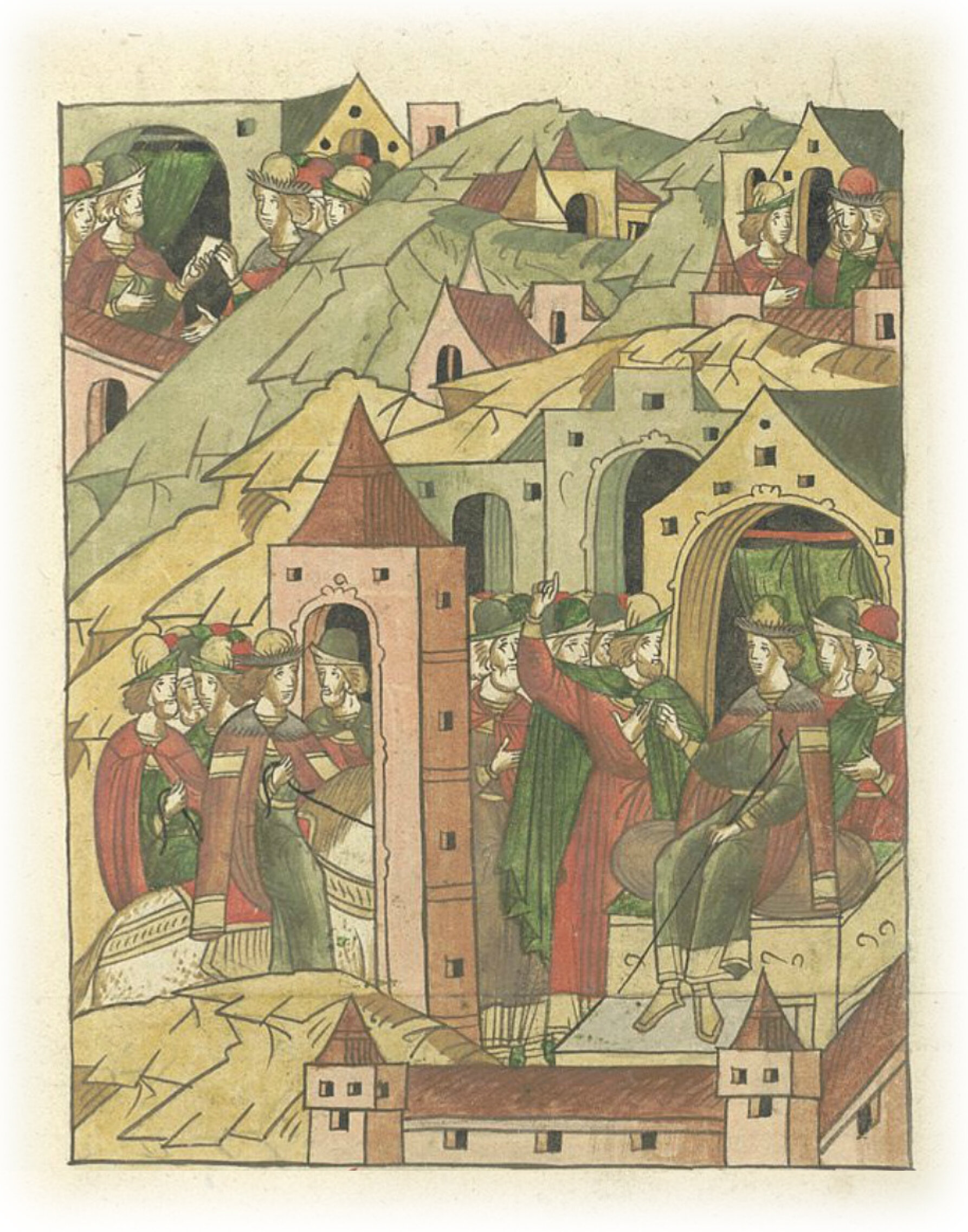 Ругодивские посадники Яким и Захар приезжают в Москву. Воеводы царя Ивана Васильевича Алексей Адашев и Иван Михайлов сообщают им, что государь пожалует их, если сдадут его воеводам помимо Ругодива Вышгород.