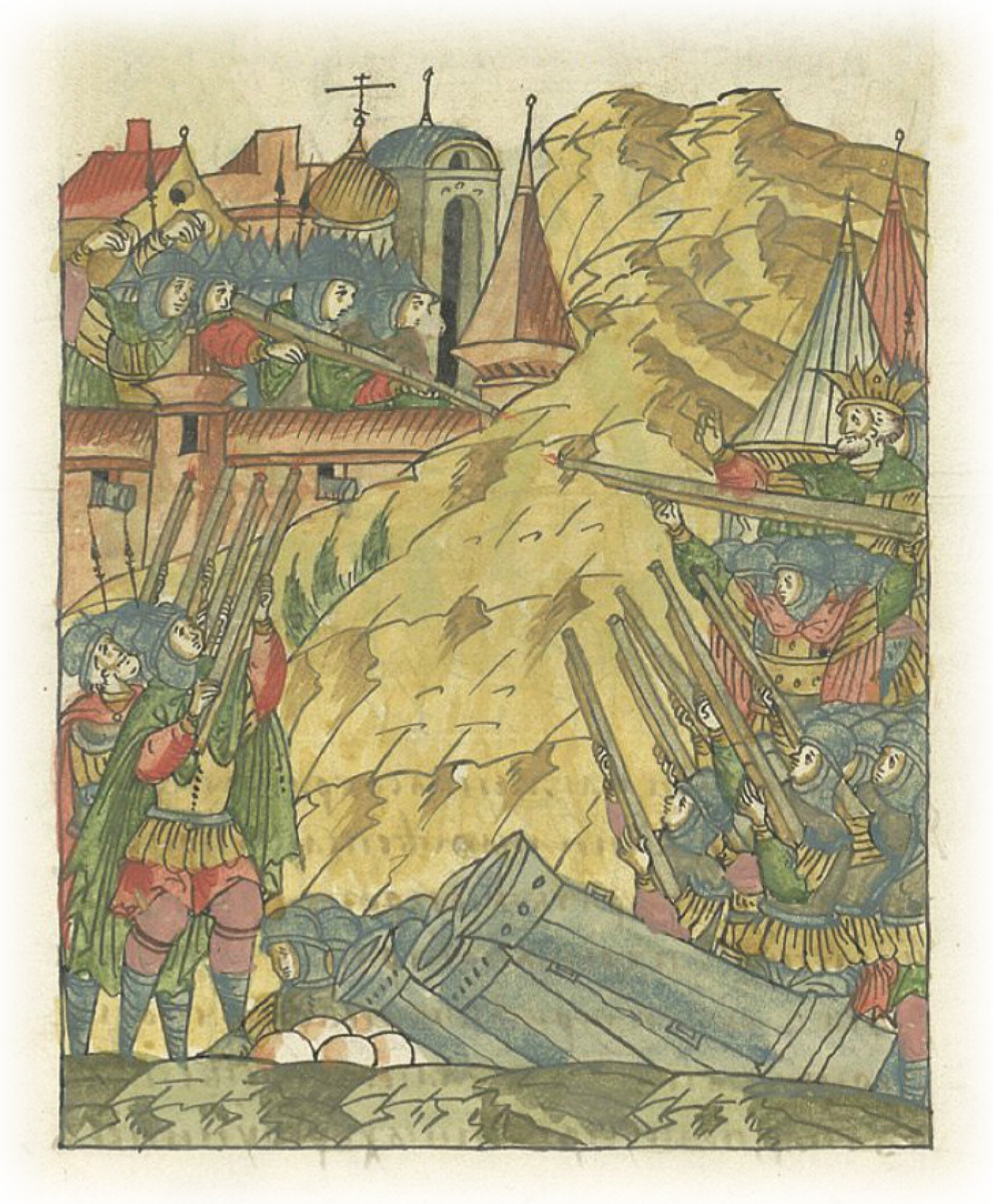 Языки говорят воеводам царя Ивана Васильевича, что магистр окопался большим рвом вокруг города Рындола, бьет из пушек и пищалей и приступает к Рындолу.