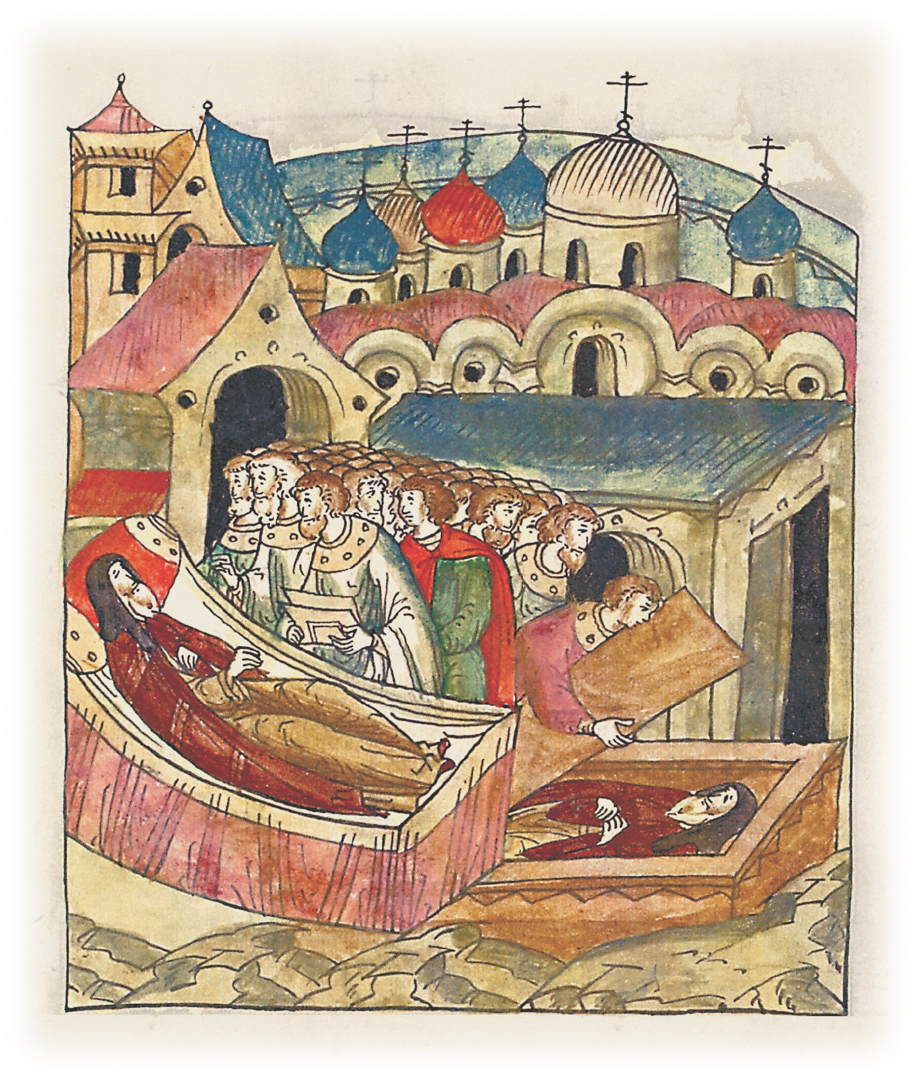 Кончина Новгородского епископа Аркадия и его похороны в церкви святой Софии.