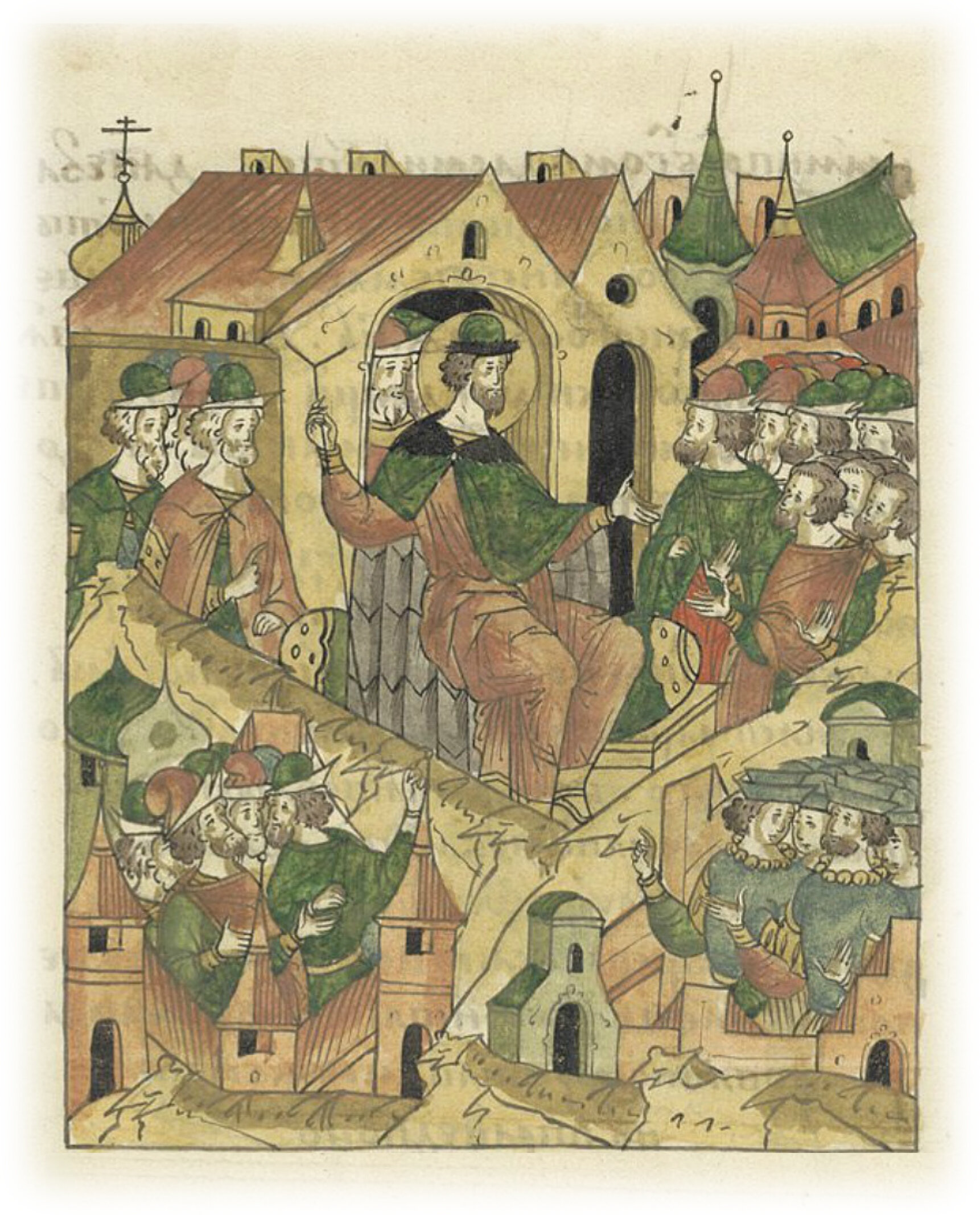 Сам же всегда был Богом храним и от всех врагов везде оставался невредим, и прославил его Господь своей милостью к нему. И был он всем врагам страшен и грозен, и повсюду при имени его трепетали. Мудрость же и острота его ума, как и Соломону, даны были ему Богом. Больше же всего чтил он правосудие, и бояр своих часто поучал притчами из Божественного писания, чтобы прежде всего вопрошали премудрости у Бога, и от пьянства удерживались,
