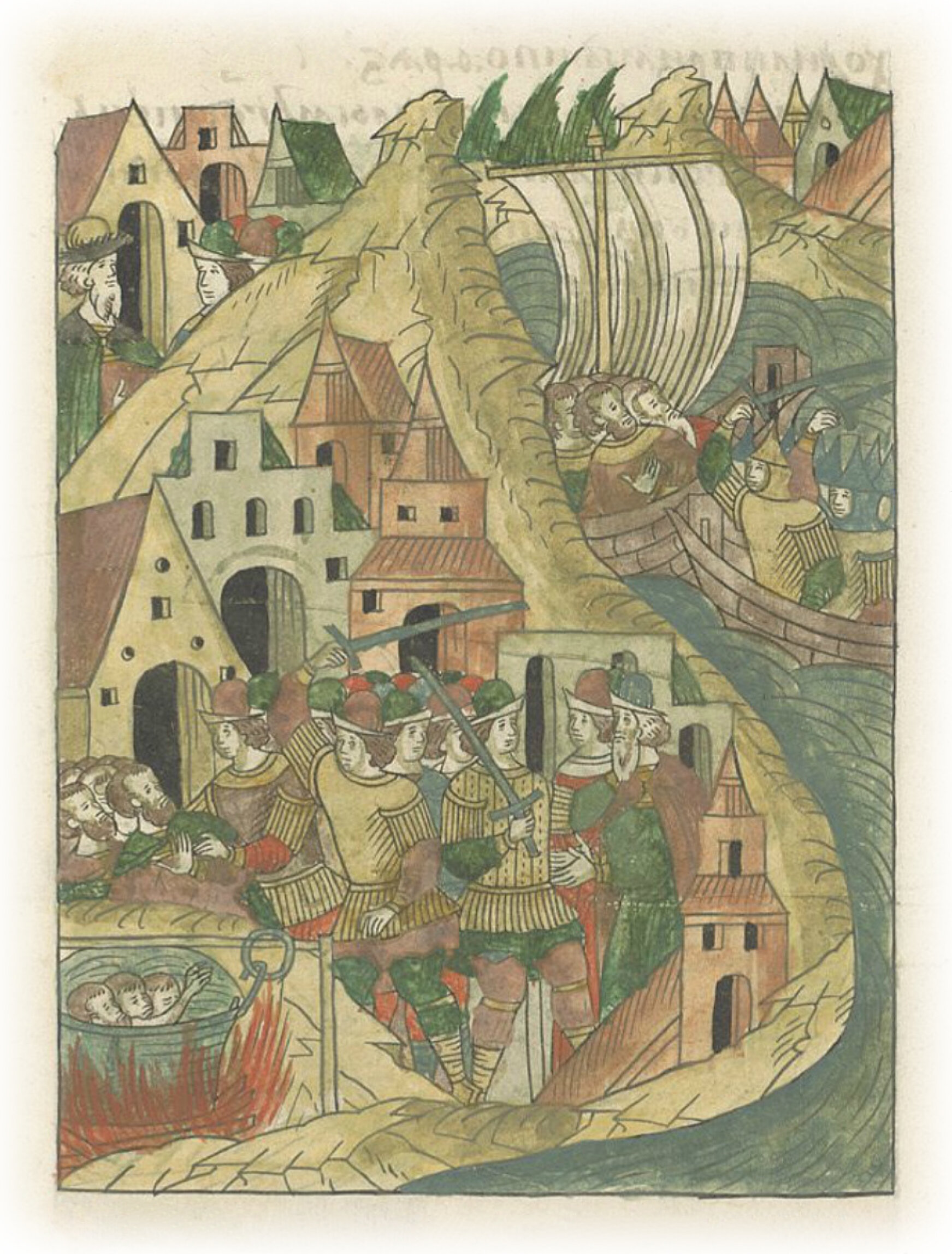 что они в Колывани новгородским купцам великого князя многие обиды причиняли и самовольное поругание, а других людей великого князя живыми в котлах варили, без уведомления великого князя и без расследования; также и послам великого князя было от них поругание, тем послам, которые от великого князя ходили в Рим и во Фрязскую землю, и в Немецкую; да и старым новгородским купцам великого князя от них было причинено много обид и неприятностей, и разбои на море были.