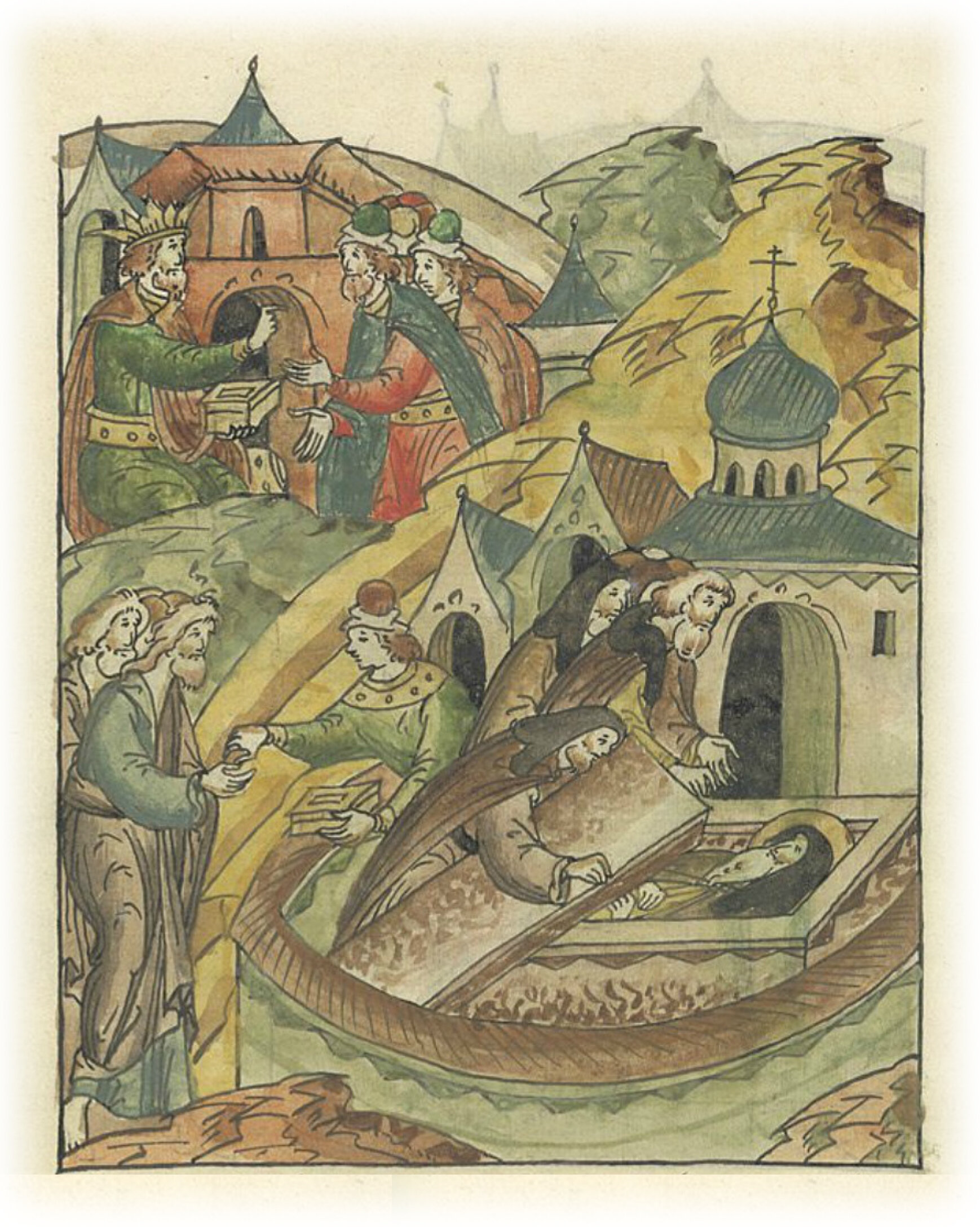 И повелел царь положить его мощи в монастыре, который он сам создал, в церкви святых 40 мучеников, и много золота раздали во время его погребения, и много исцелений тогда произошло.