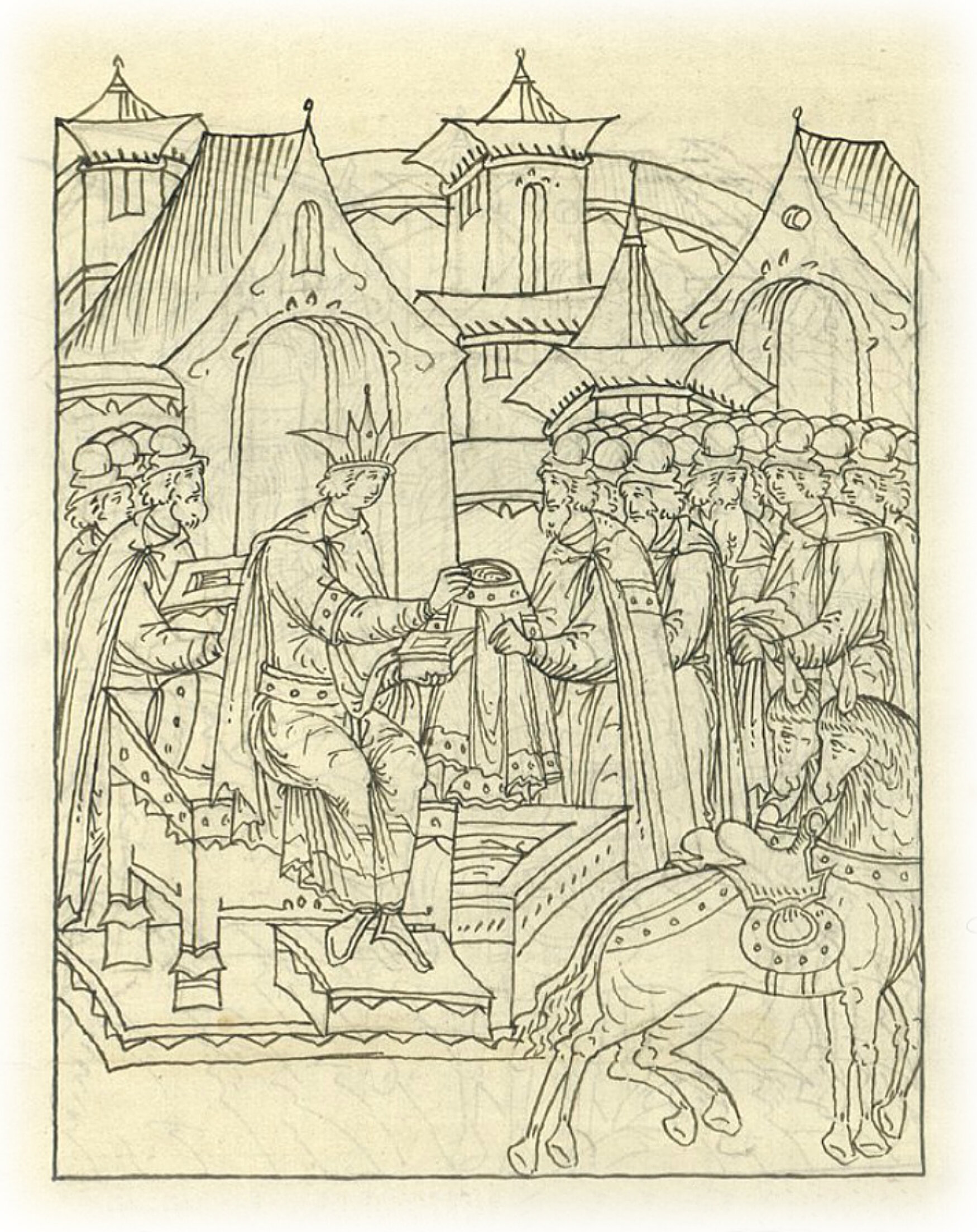 Ругодивские посадники Яким и Захар приезжают в Москву. Воеводы царя Ивана Васильевича Алексей Адашев и Иван Михайлов сообщают им, что государь пожалует их, если сдадут его воеводам помимо Ругодива Вышгород.