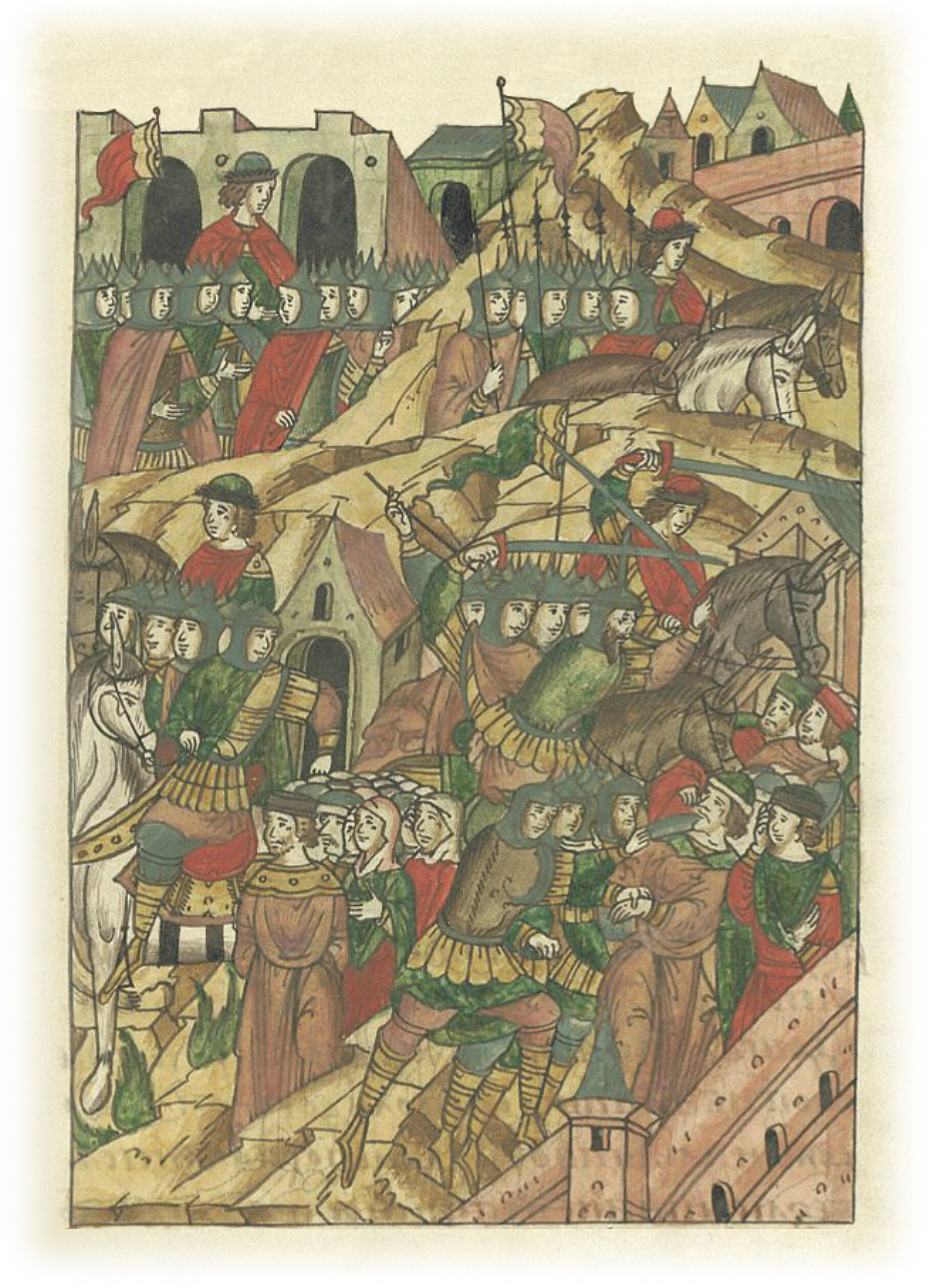 И собрал вои(н)ство многое, и приятелей, и друзей отца своего, великого князя Миндовга, и пошел на нечестивую литву и чудь, и попленил всех могущественных у тех.