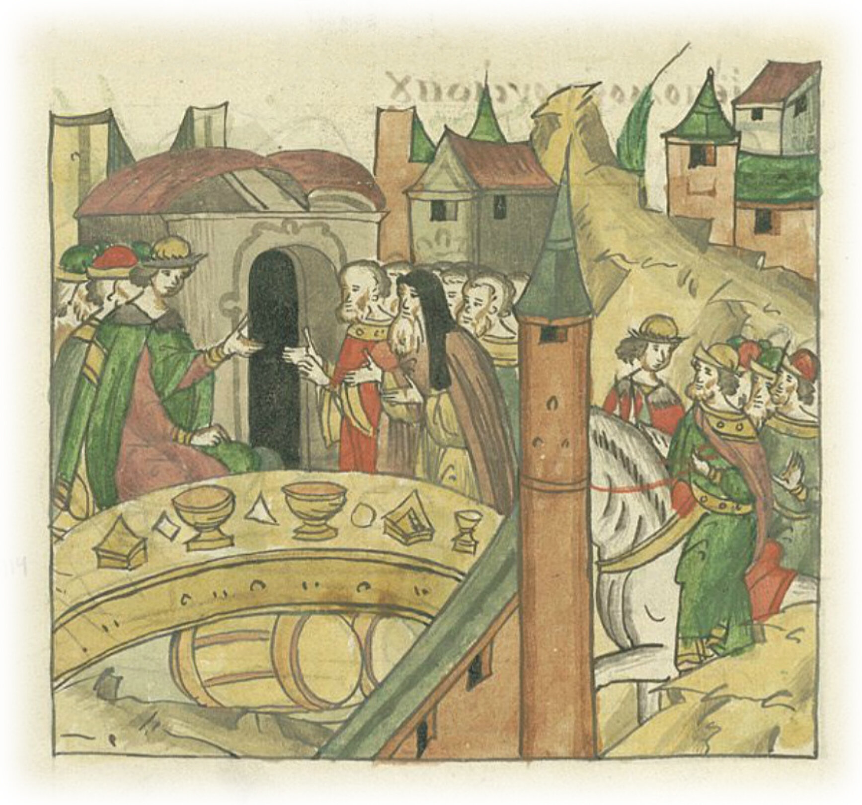 Ругодивские посадники Яким и Захар приезжают в Москву. Воеводы царя Ивана Васильевича Алексей Адашев и Иван Михайлов сообщают им, что государь пожалует их, если сдадут его воеводам помимо Ругодива Вышгород.