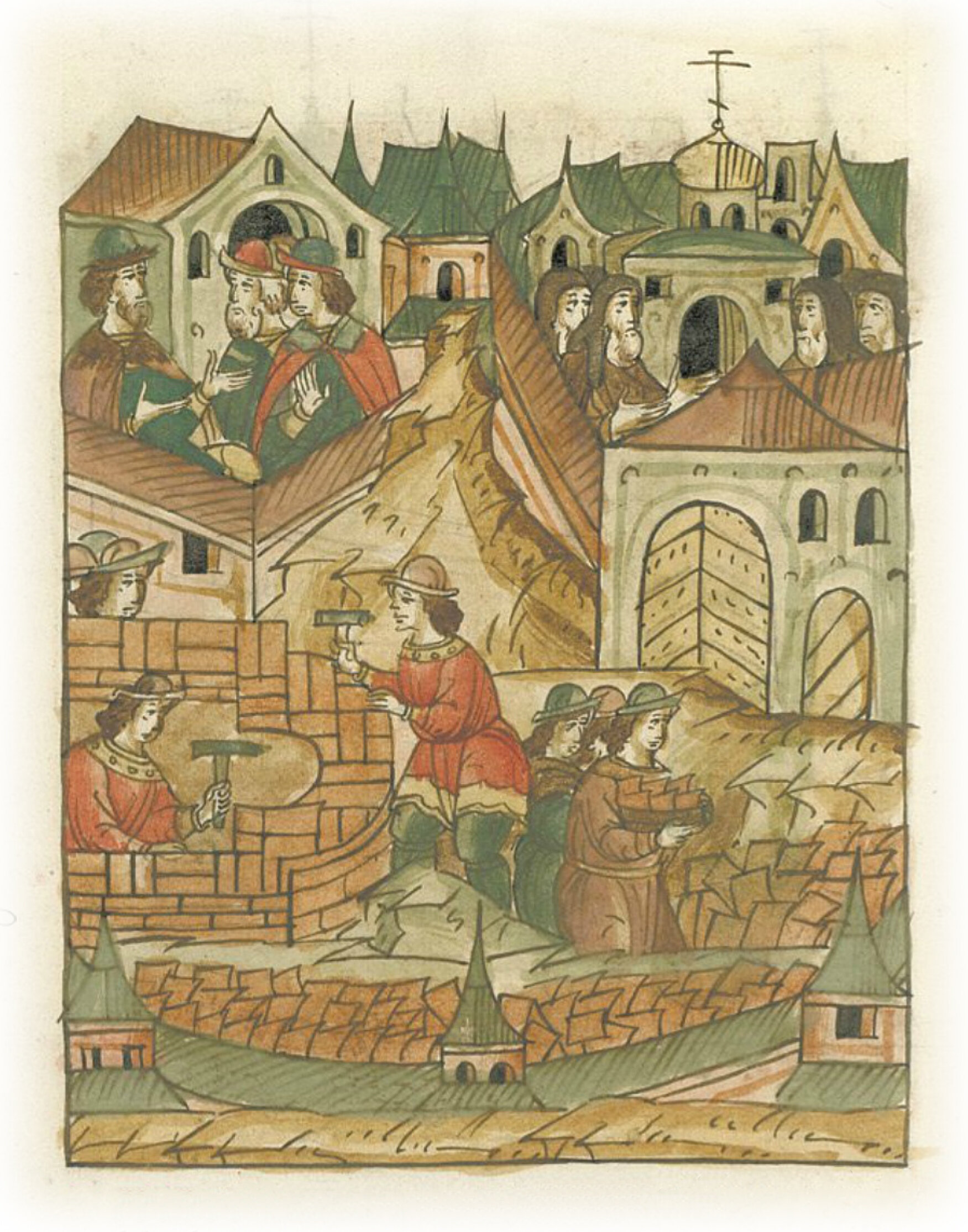 В том же году повелением великого князя Ивана Васильевича разобрали старую церковь (святых) Козьмы и Дамиана в городе напротив церкви архангела Михаила и заложили новую.
