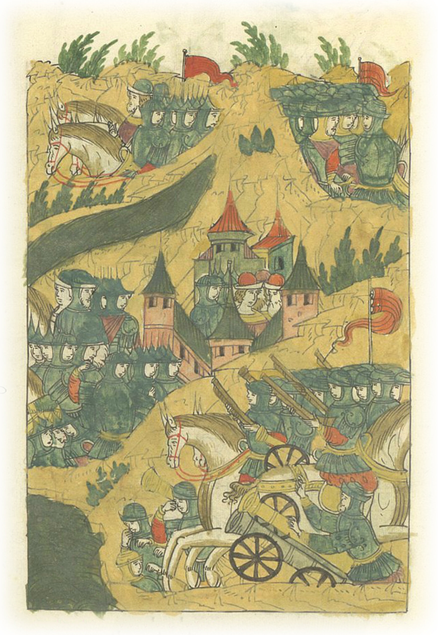 Языки говорят воеводам царя Ивана Васильевича, что магистр окопался большим рвом вокруг города Рындола, бьет из пушек и пищалей и приступает к Рындолу.