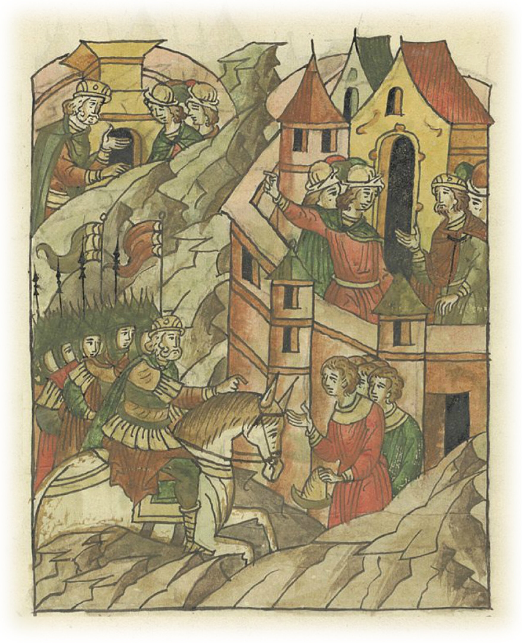 Ругодивские посадники Яким и Захар приезжают в Москву. Воеводы царя Ивана Васильевича Алексей Адашев и Иван Михайлов сообщают им, что государь пожалует их, если сдадут его воеводам помимо Ругодива Вышгород.