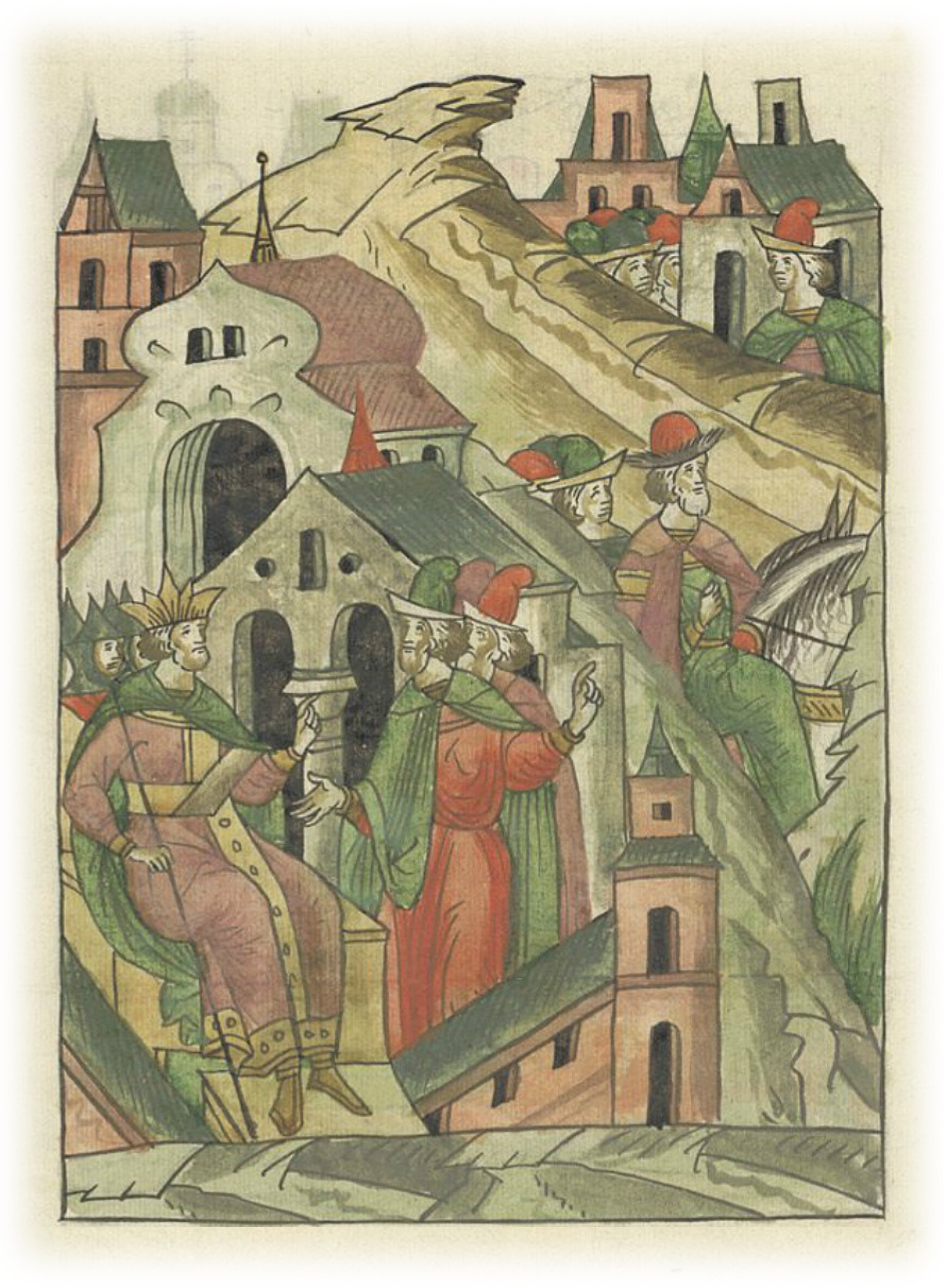 Ругодивские посадники Яким и Захар приезжают в Москву. Воеводы царя Ивана Васильевича Алексей Адашев и Иван Михайлов сообщают им, что государь пожалует их, если сдадут его воеводам помимо Ругодива Вышгород.