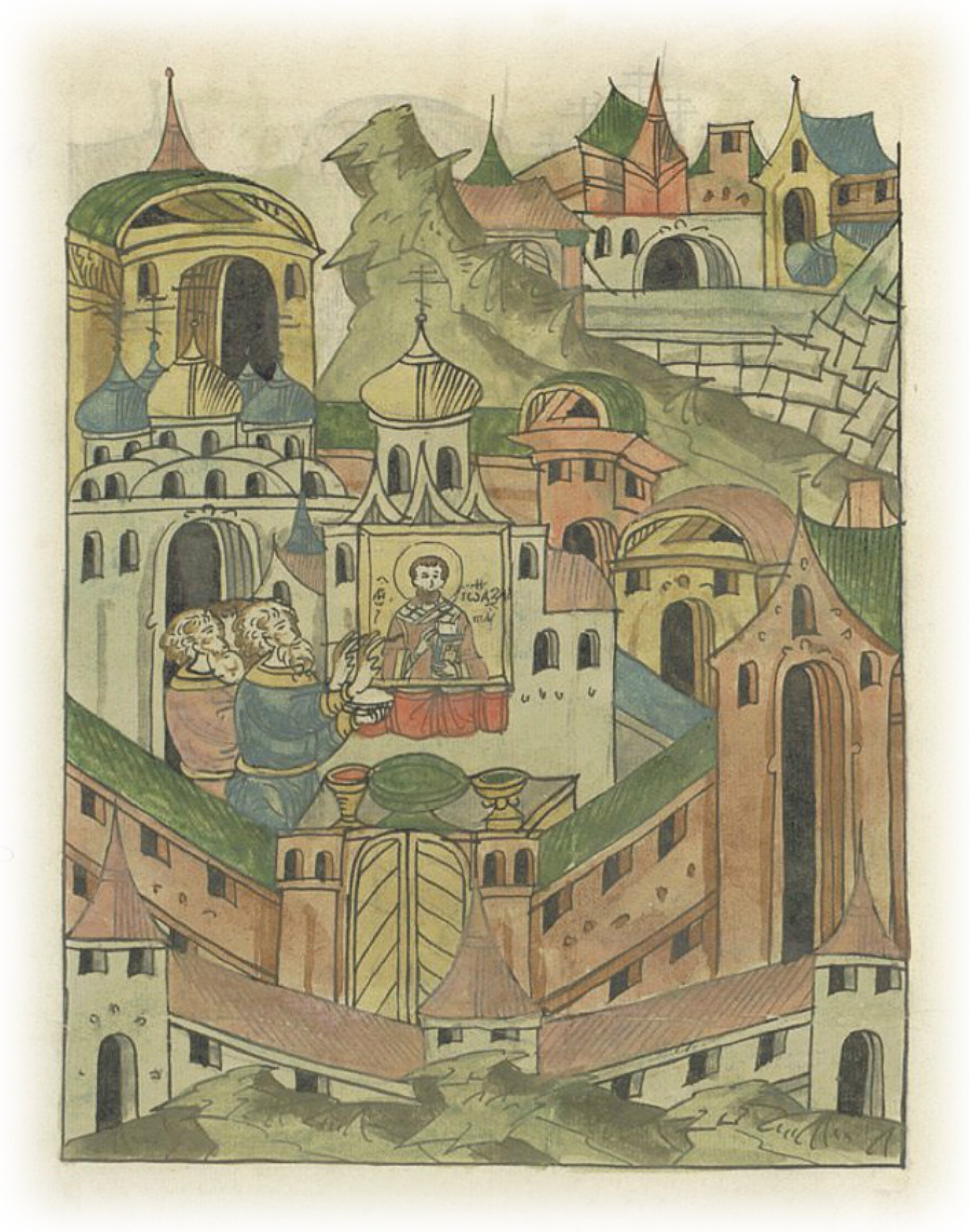 Роспись каменной церкви святителя Иоанна Златоуста на воротах. Обрушение в Новгороде каменной церкви святого Николая на Вежищах.