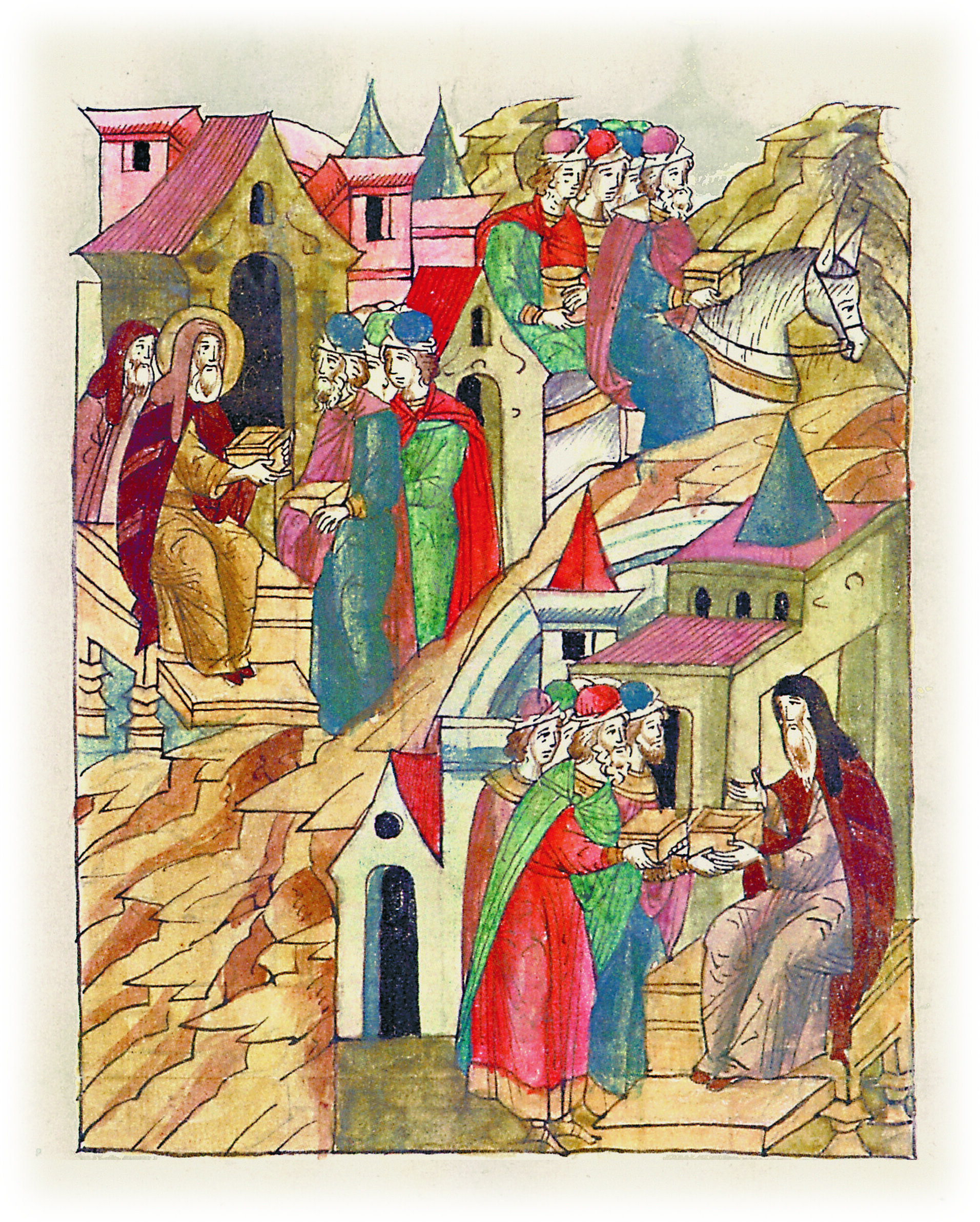 Новгородский епископ Илья посылает дары в Киев митрополиту всея Руси Иоанну.
