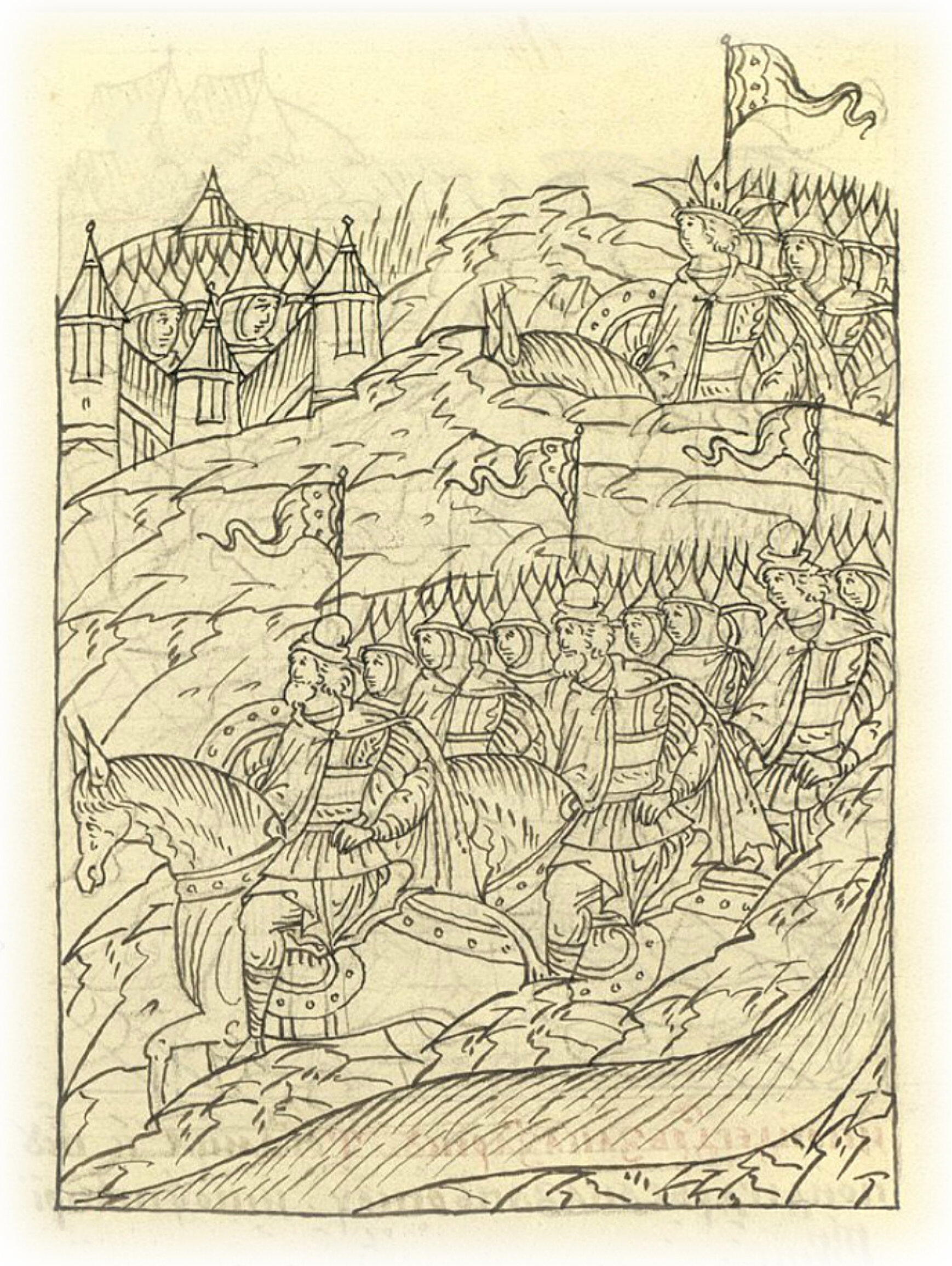 Языки говорят воеводам царя Ивана Васильевича, что магистр окопался большим рвом вокруг города Рындола, бьет из пушек и пищалей и приступает к Рындолу.
