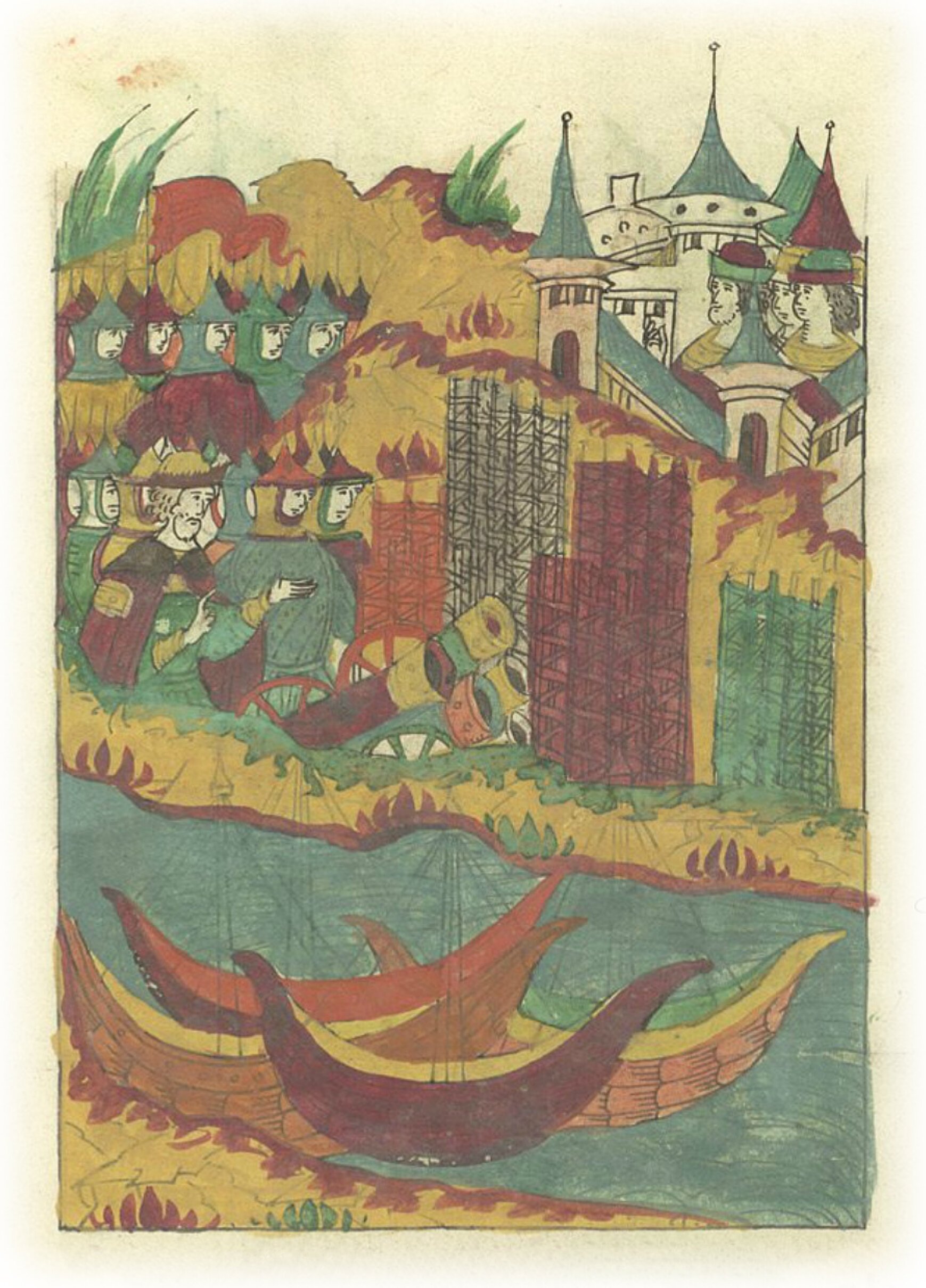 И Даниил к городу Сыренску пришел, и снаряжение из судов вынес, и туры* поставил. * осадное передвижное укрепление.