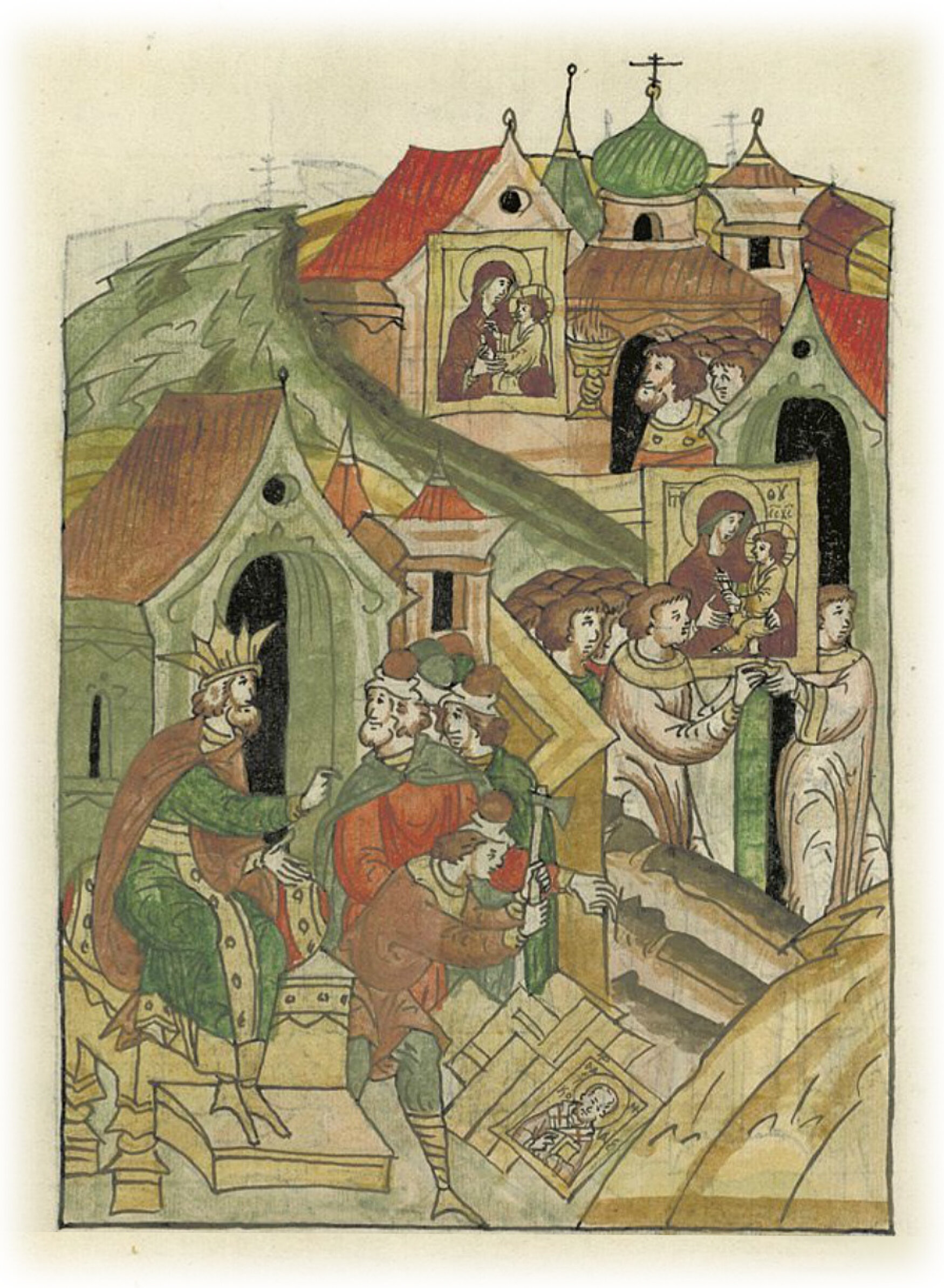 Некогда в Царьграде было иконоборчество, и отнесли икону Пресвятой Богородицы Одигитрии в монастырь Пантократора, и спрятали ее в стене алтаря, зажгли кадило пред нею, а иконоборцы правили в Царьграде 60 лет.