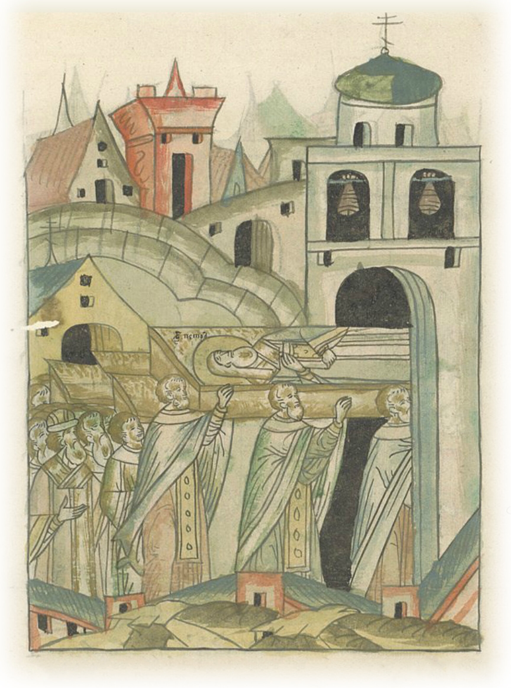 Перенесение мощей чудотворца Петра и прочих митрополитов из церкви Пречистой в церковь Ивана святого.