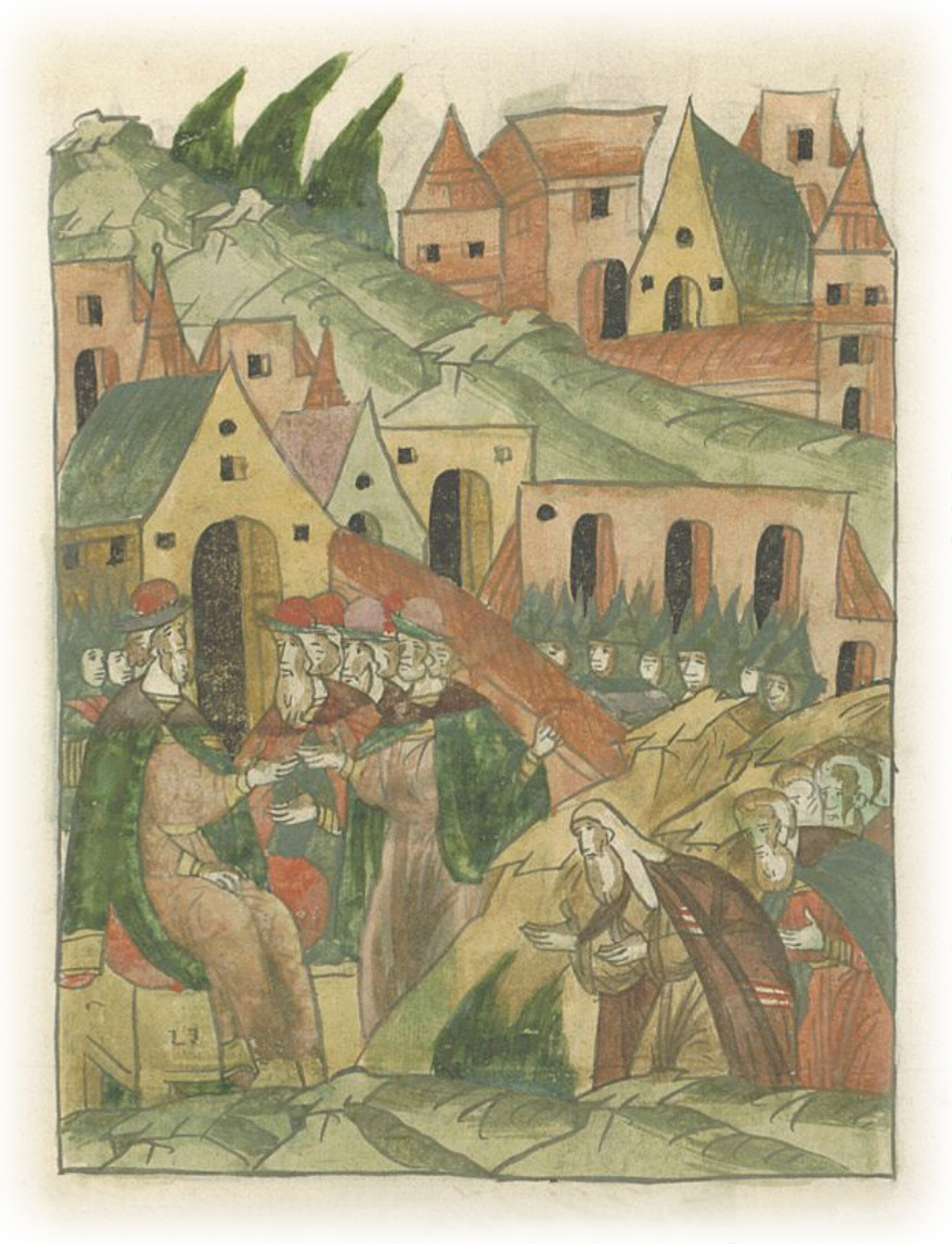 Новгородский владыка Феофил с посадниками приходит к великому князю Ивану Васильевичу и просит переговоров с боярами.