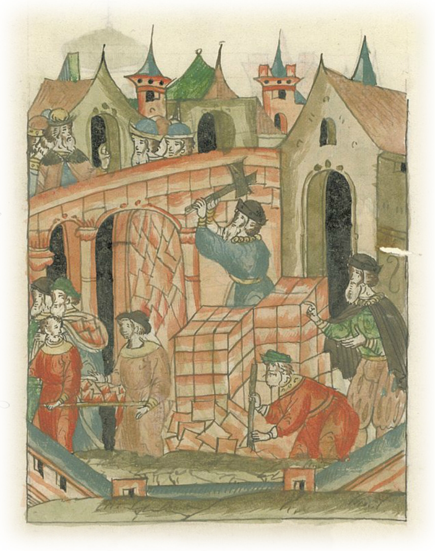 Венецианский зодчий Аристотель Фиораванти начинает разбивать неупавшие стены у церкви Пречистой Богородицы.