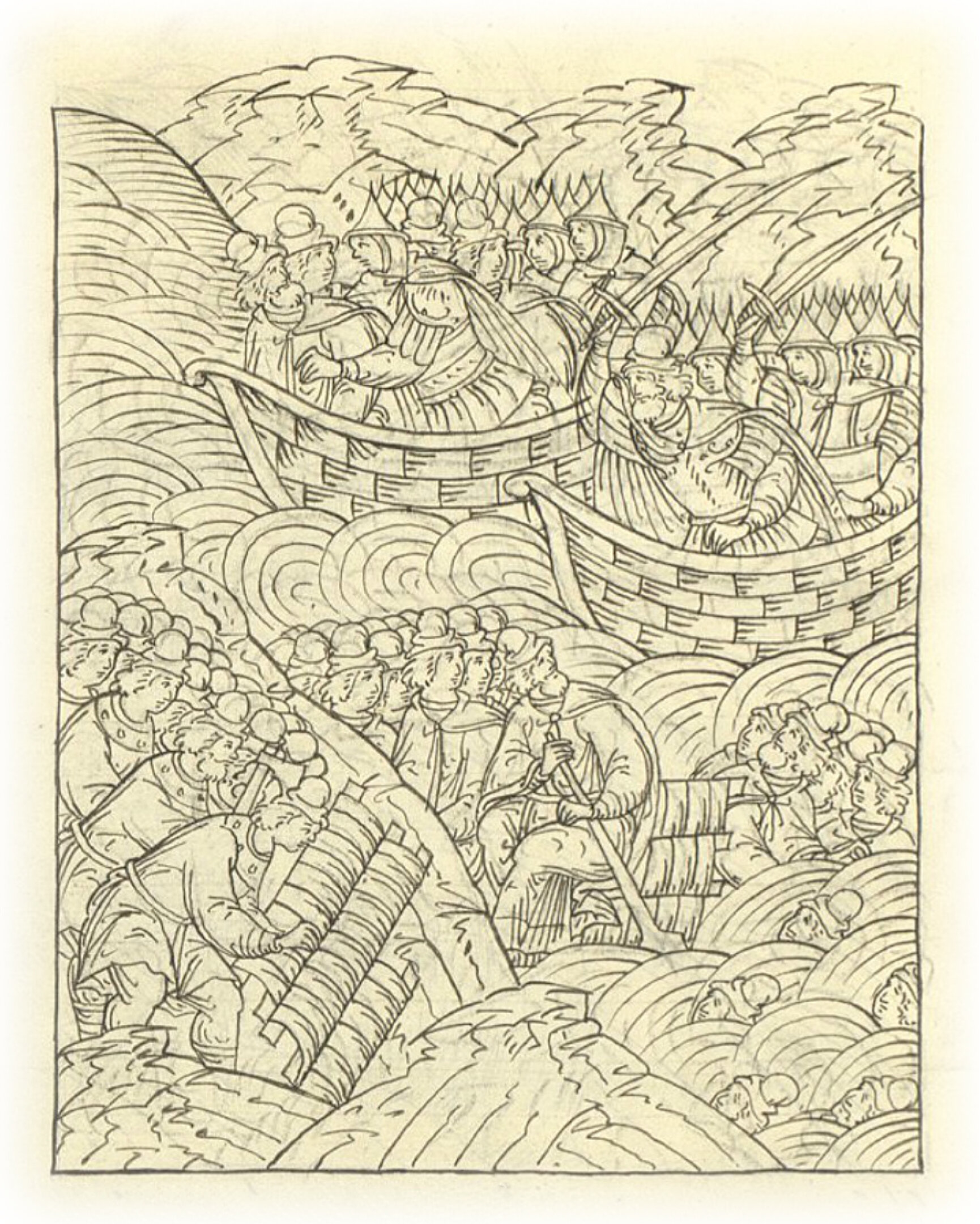 И крымцы сделали тары* и начали переправляться, и пришли против них Бахтеяр с вятчанами и казаками и разбили их наголову, и потопили: а живыми поймали Кощака-улана, Барболсунулана, Торчи-князя-багатыря, Ишмахамета-мурзу, Сулешева брата крымского, и других уланов и князей. Поймали их живыми * плавательные средства.