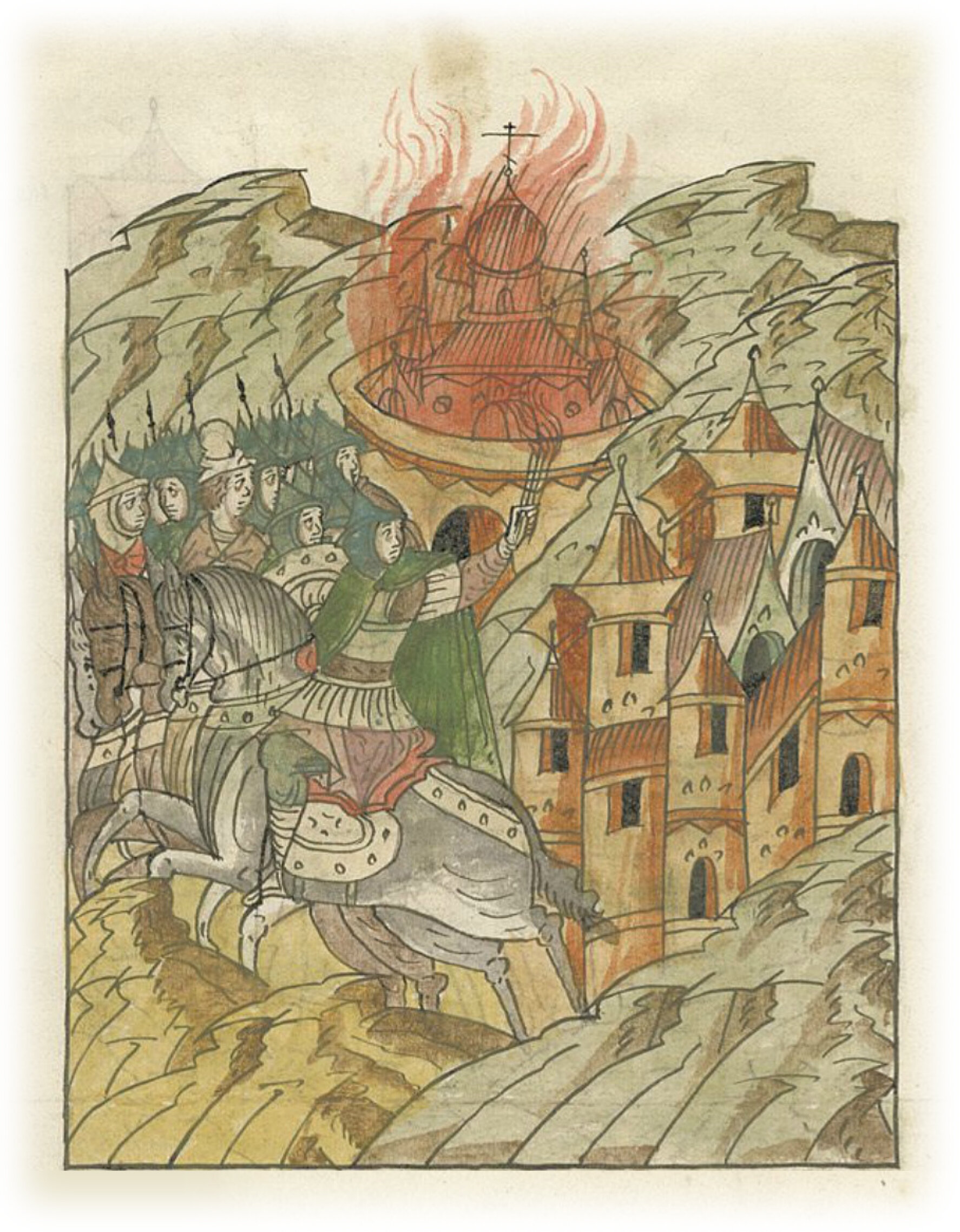 Мордва с Пургасом зажигает монастырь святой Богородицы вне города и бежит.