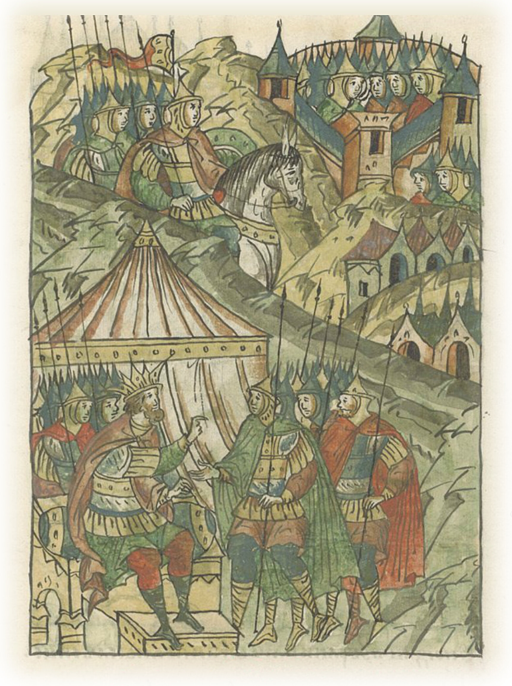 Ругодивские посадники Яким и Захар приезжают в Москву. Воеводы царя Ивана Васильевича Алексей Адашев и Иван Михайлов сообщают им, что государь пожалует их, если сдадут его воеводам помимо Ругодива Вышгород.
