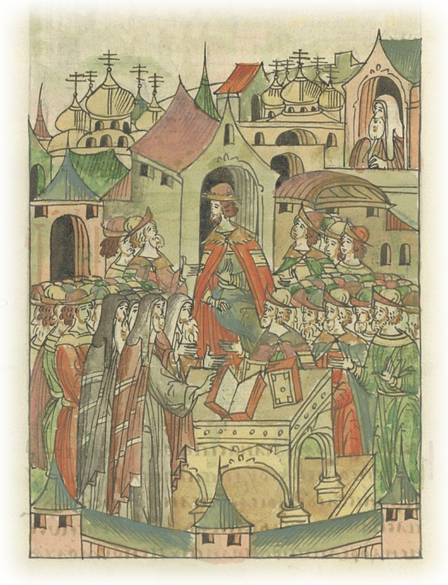 И тогда все русские епископы, которые были в то время в Москве, пробудились, и князья, бояре, вельможи и множество христиан тогда вспомнили и осознали прежние греческие законы и начали говорить согласно Святому Писанию и называть Исидора еретиком. И тогда великий князь Василий Васильевич обрадовался согласию своих епископов и князей, и бояр, и всех православных христиан