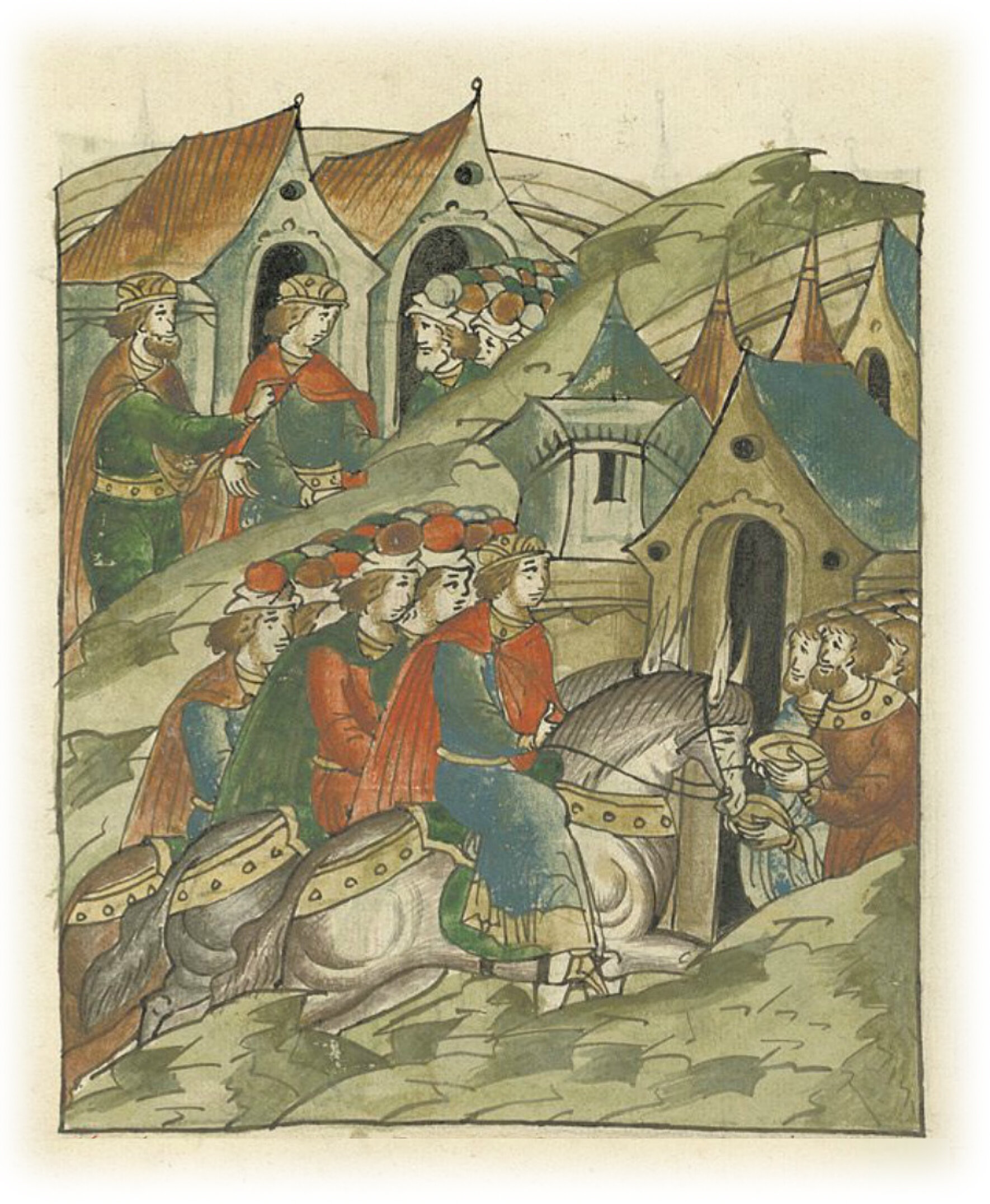 Князь Андрей Боголюбский дает новгородцам на княжение своего сына Юрия.