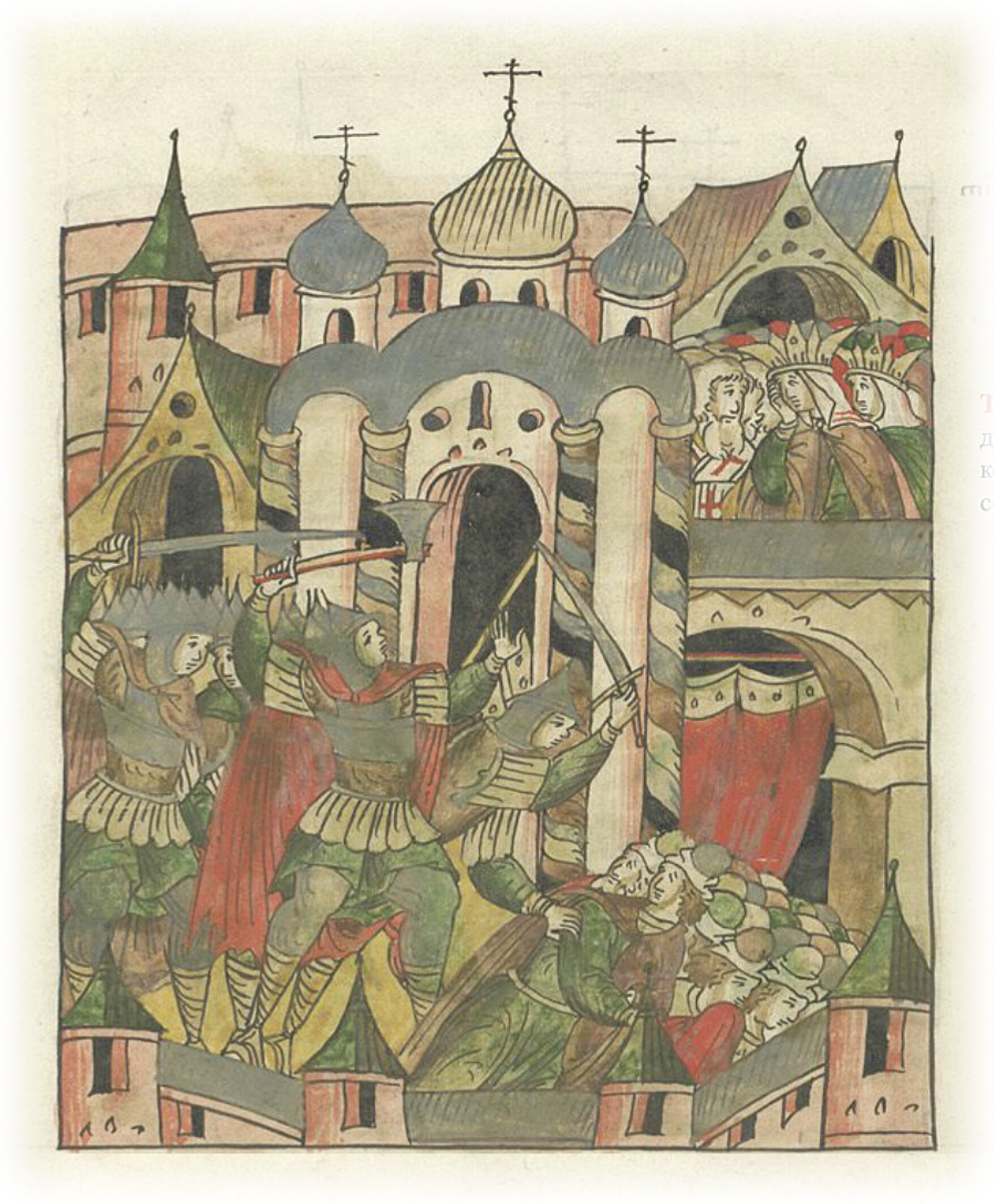 Татары же выбили двери церковные, и тех, которые были в церкви и сопротивлялись, убили.