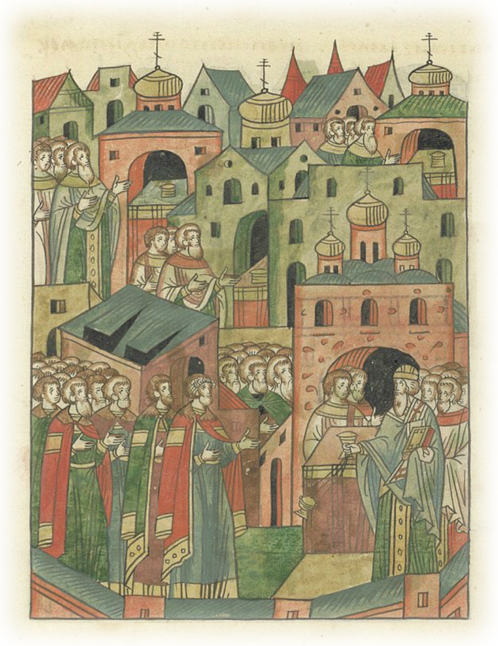 И вошли в соборную церковь, и молебен совершили Господу Богу и Пречистой Его матери, и святую литургию служил Герасим епископ; также и по всему городу священники молебны и литургии сотворили о здравии великого князя, и всех князей, и всего воинства христолюбивого.