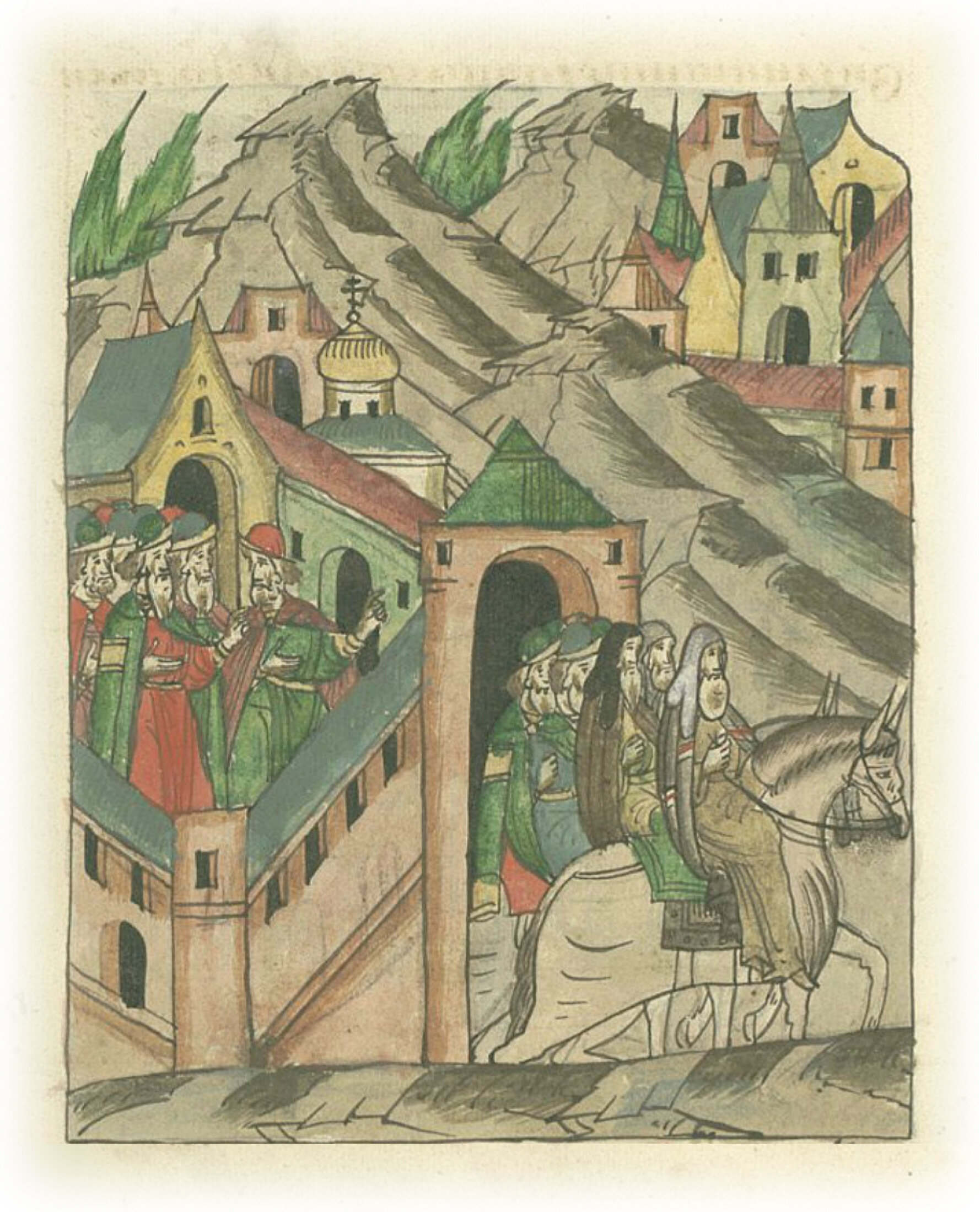 Митрополит Пимен идет в Царьград со Смоленским владыкой Михаилом и Спасским архимандритом Сергием.