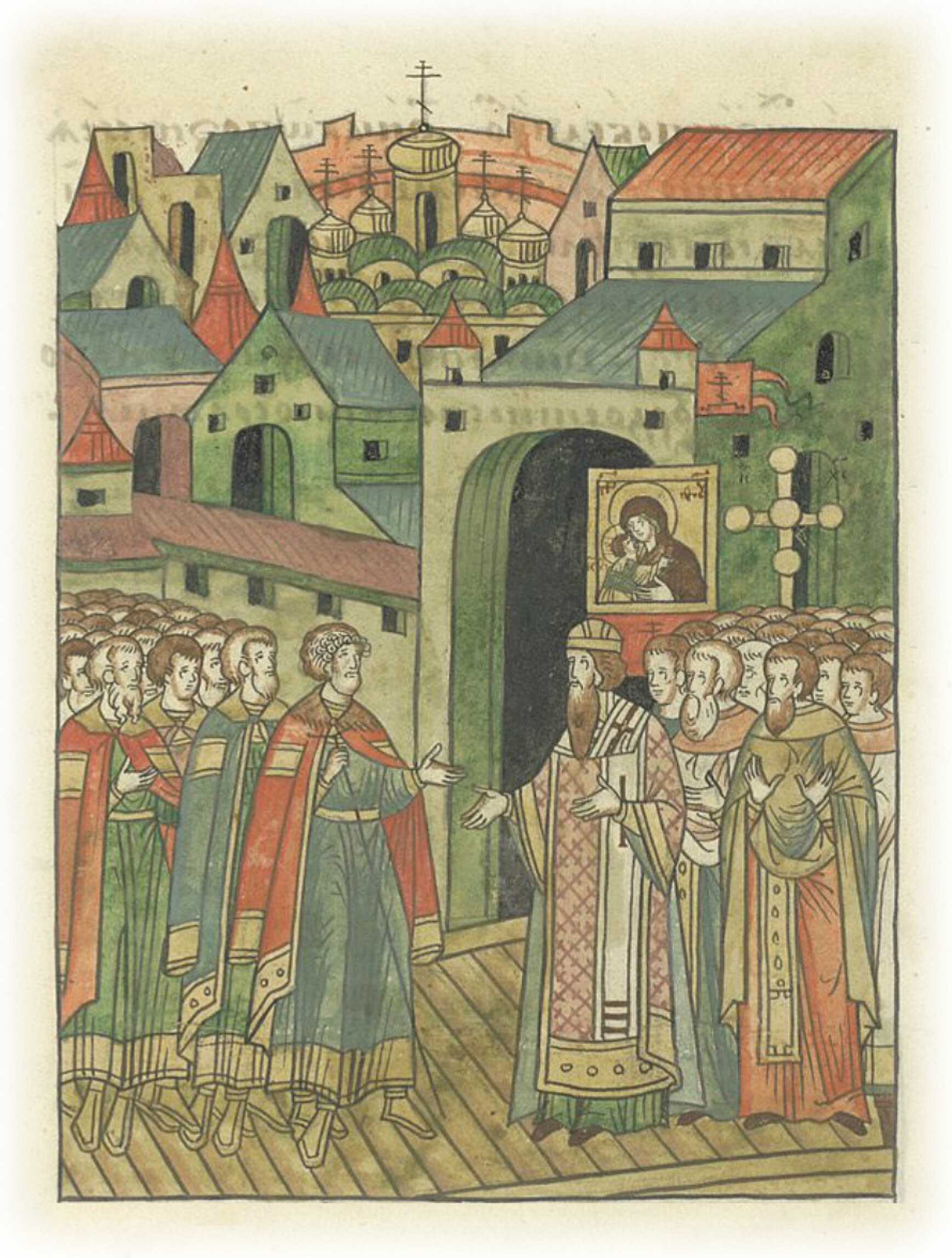 И вошел в город Москву, и встретил его отец его Киприан, митрополит Киевский и всея Руси, с крестами, со всем священным собором. И говорил князь великий митрополиту: «Отче, Божьею милостию, и Пречистой Его матери, и великого чудотворца Петра, и твоими святыми молитвами, и преподобного игумена Сергия, одолели нечестивого Мамая и сущих с ним победили. Ибо он вознесся гордостью, мы же – смирением. Ты ведь сам видел, сколько золота и серебра посылали ему и сколько молили его. Он же не послушал, но вознесся гордостью своею и посрамился.