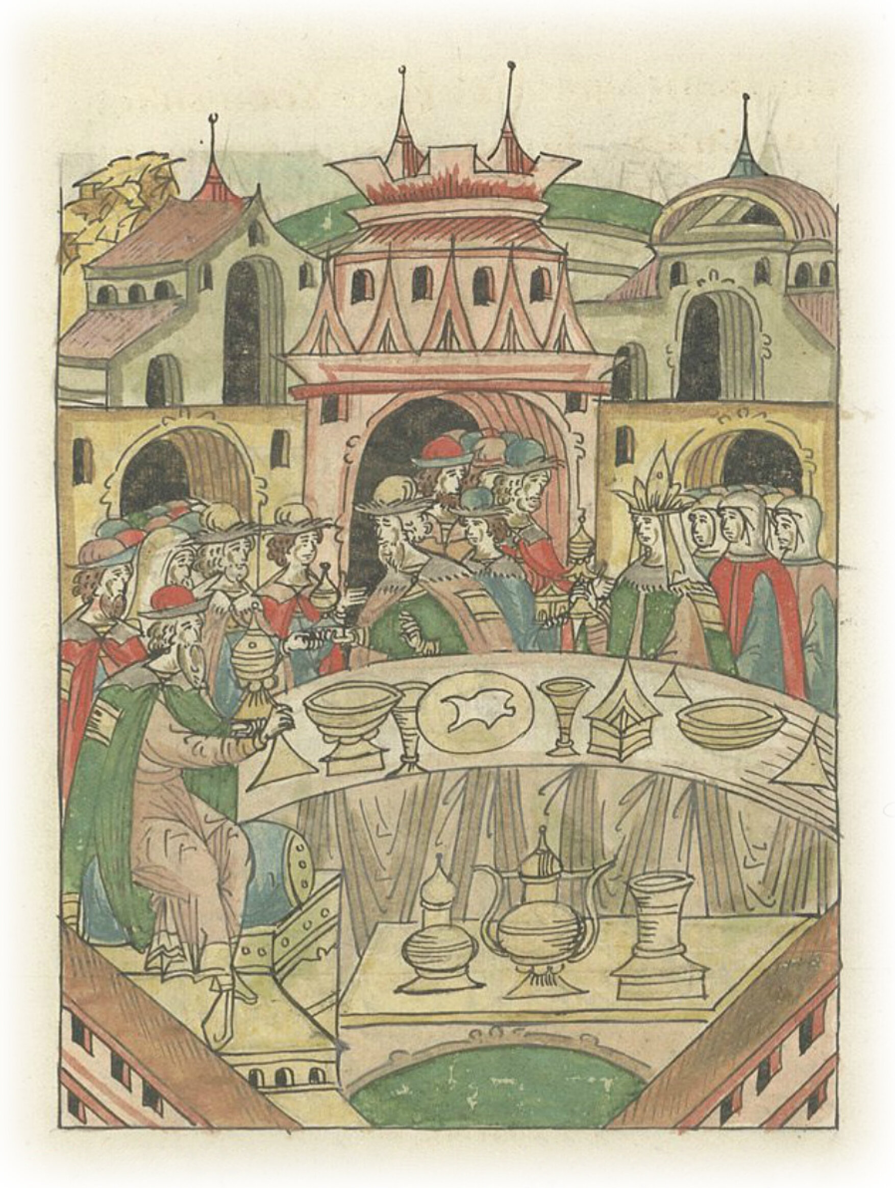 Потом князь Дмитрий пир великий сотворил в честь великого князя и великой княгини, и детей их: были тут все епископы земли Русской, и бояре многие, и дети боярские. И чествовал великого князя, и дары многие давал великому князю и великой княгине, и детям их,