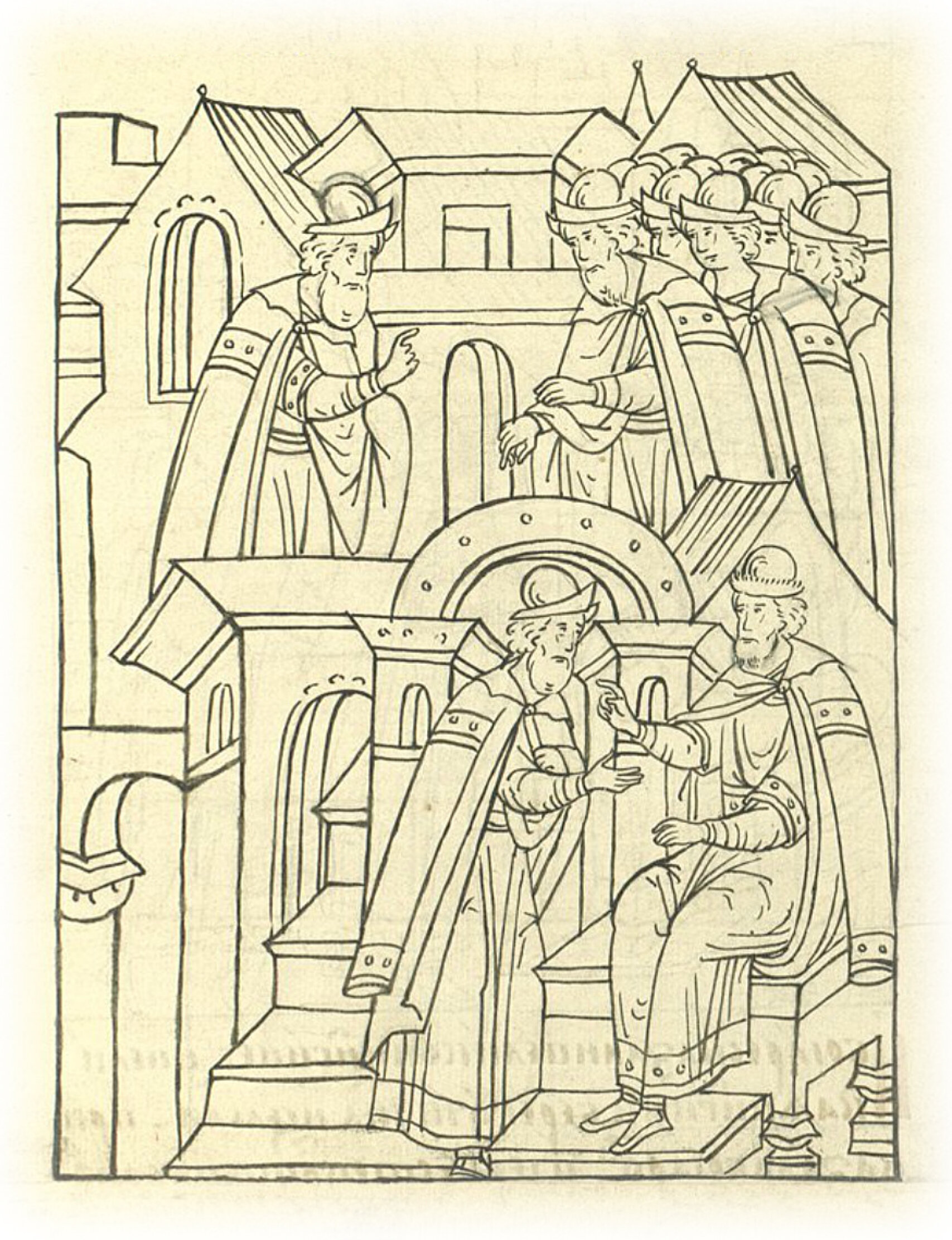 Ругодивские посадники Яким и Захар приезжают в Москву. Воеводы царя Ивана Васильевича Алексей Адашев и Иван Михайлов сообщают им, что государь пожалует их, если сдадут его воеводам помимо Ругодива Вышгород.