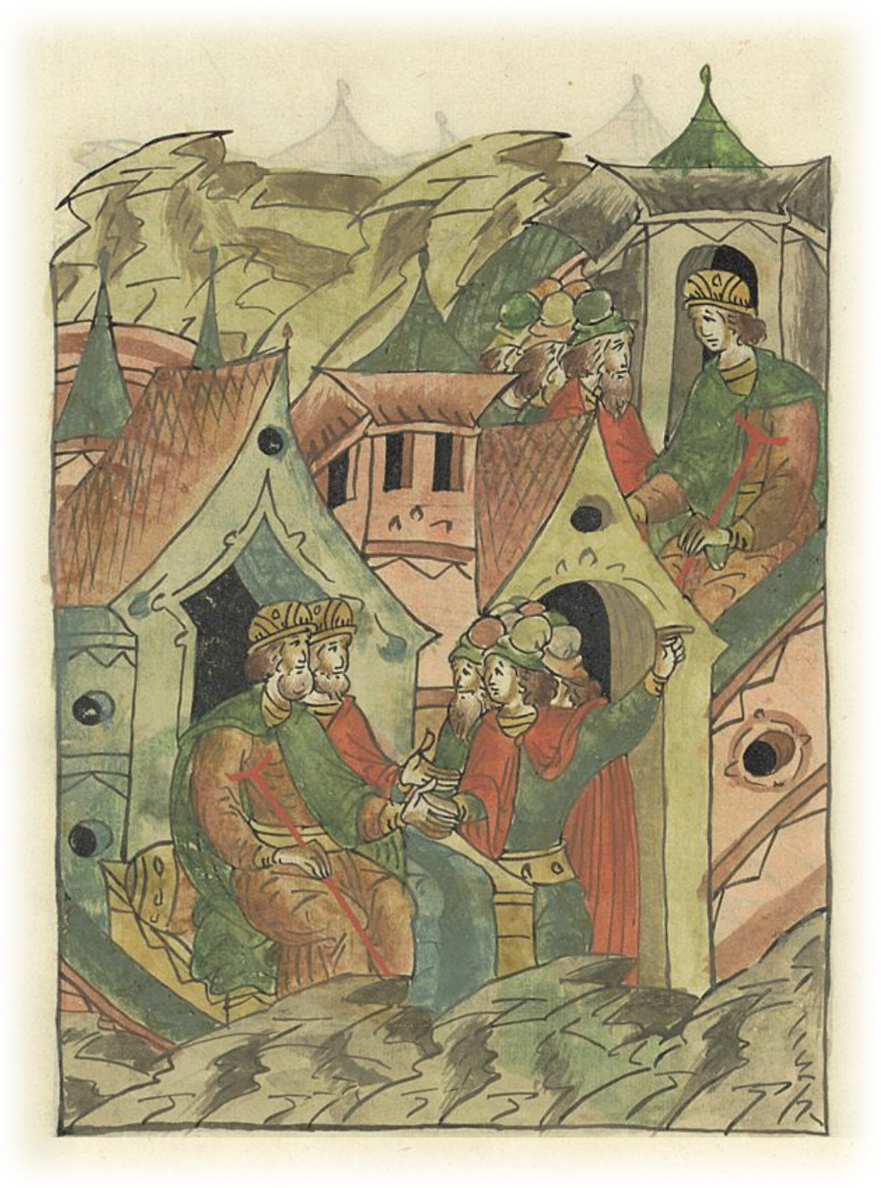 Ругодивские посадники Яким и Захар приезжают в Москву. Воеводы царя Ивана Васильевича Алексей Адашев и Иван Михайлов сообщают им, что государь пожалует их, если сдадут его воеводам помимо Ругодива Вышгород.