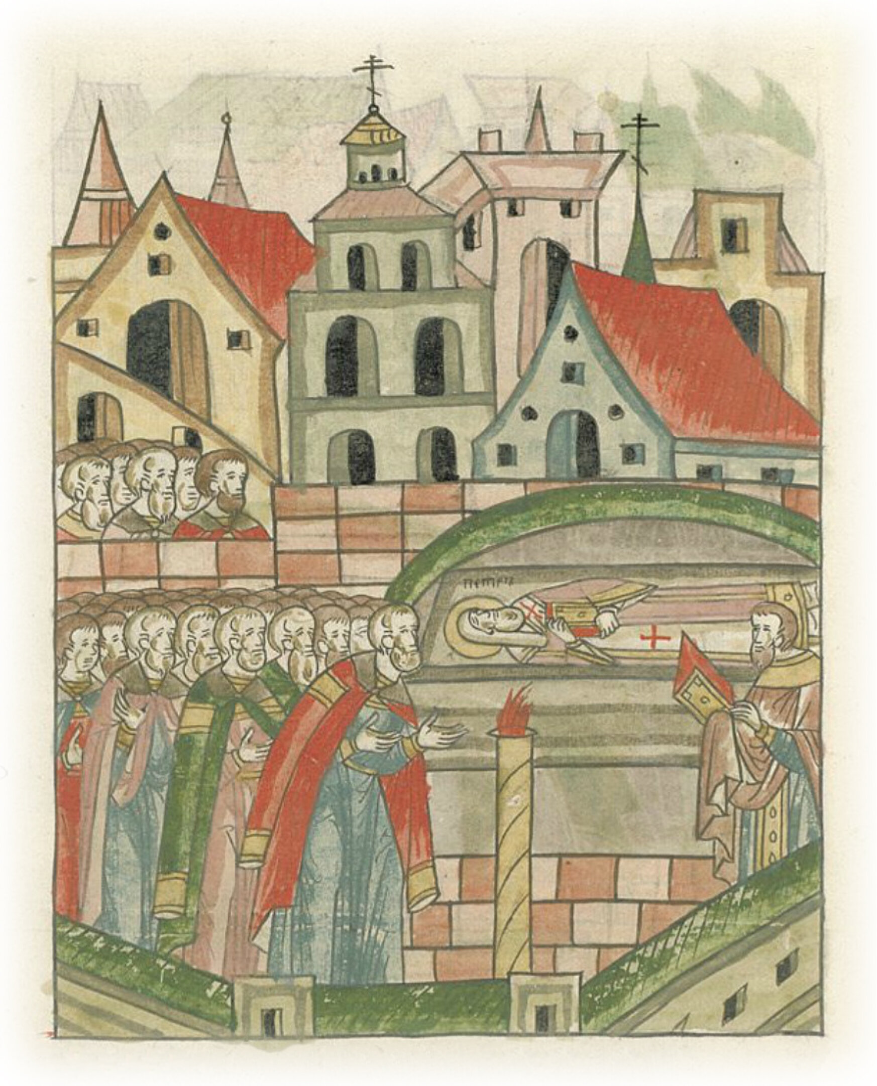 Создание соборной церкви Успения пресвятой Богородицы в Москве митрополитом всея Руси Филиппом. Перенесение мощей чудотворца Петра. Множество православных христиан приходят прикоснуться ко гробу чудотворца Петра.