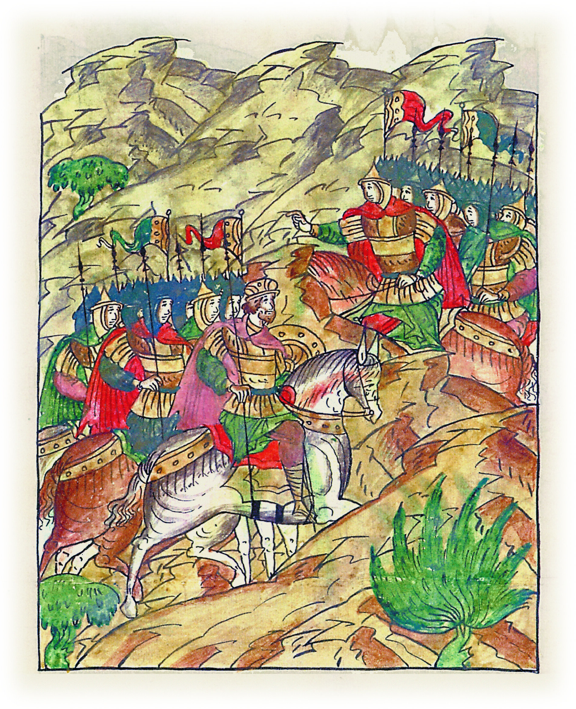 Он же вознесся в младенчестве своем и пошел к берендеям. Они же сказали ему: «Приказывал нам так, говоря, что с братьями я; а где братья твои, Владимир, и Ярослав, и Давид? Ездишь ведь один, а нас как младенцев прельстил».